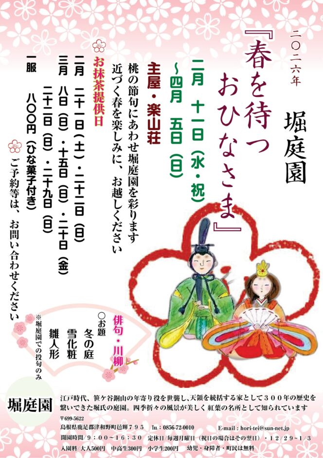 2026年2月11日(水)~4月30日(木) 【定休日】毎月第一・第三水曜日