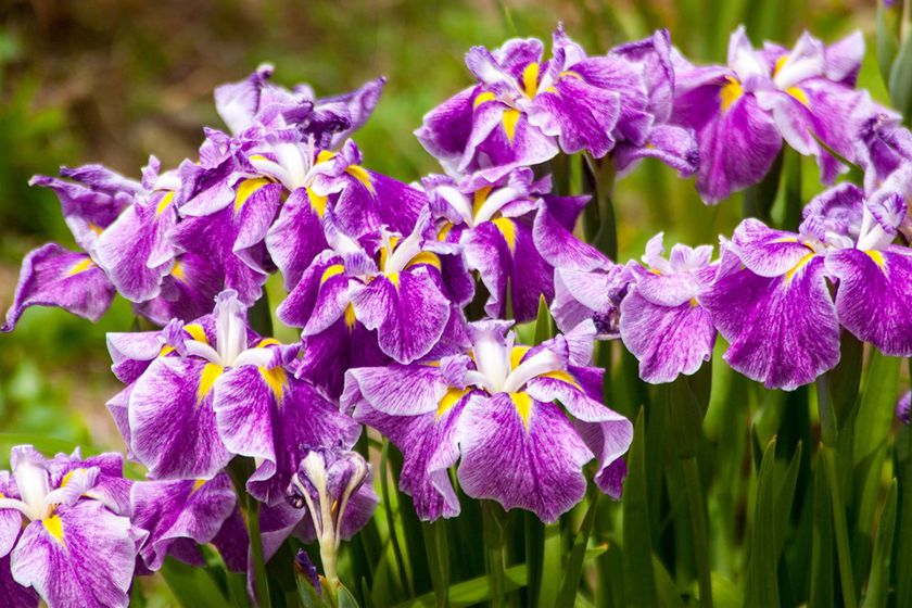 休耕田に約20種類600株、紫や白、ピンクなど色とりどりのハナショウブが植栽されています。のどかな田園風景も魅力です。