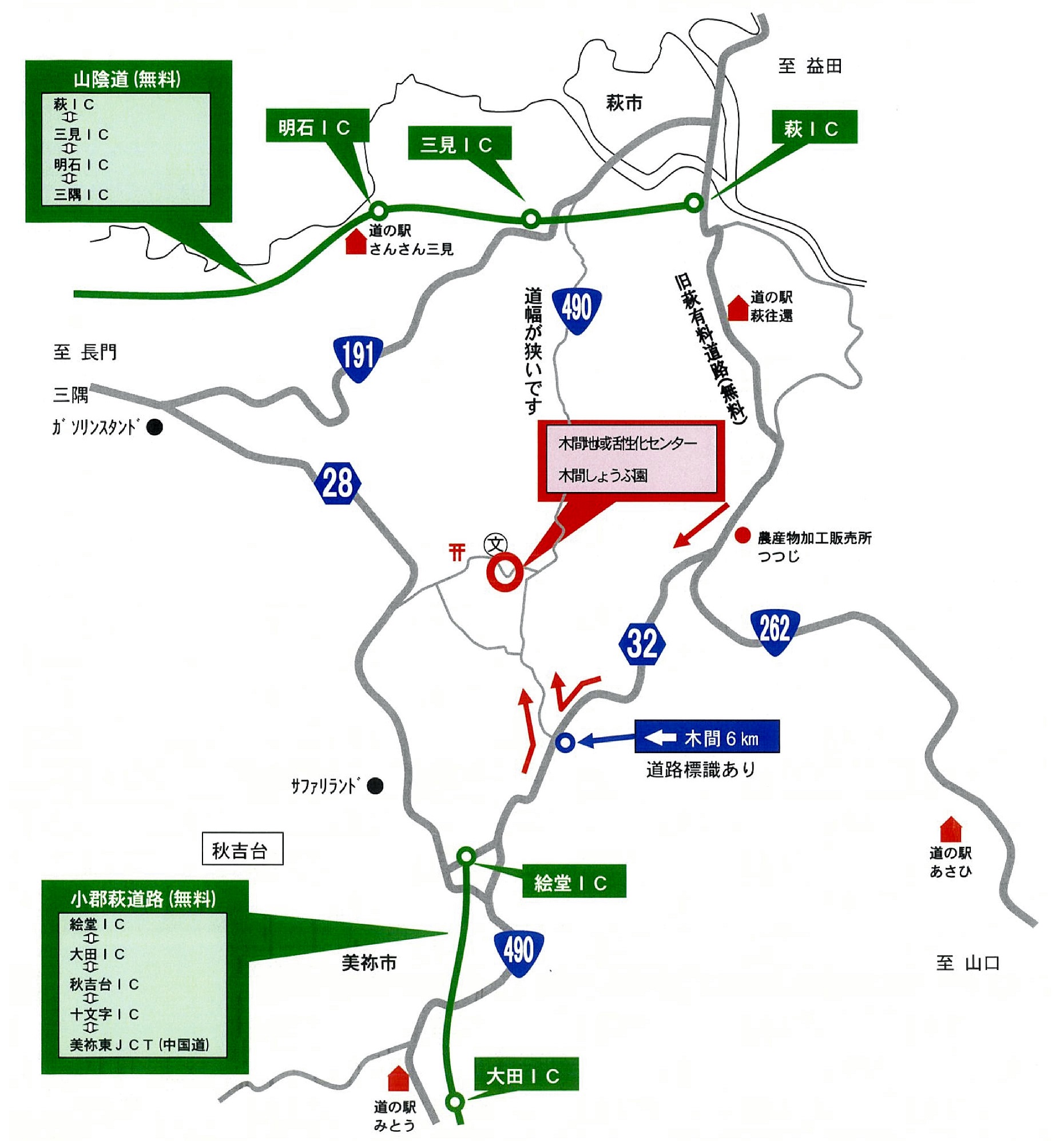 萩市街地より車で約20~25分 ※道が狭隘な所がありますのでお気をつけください