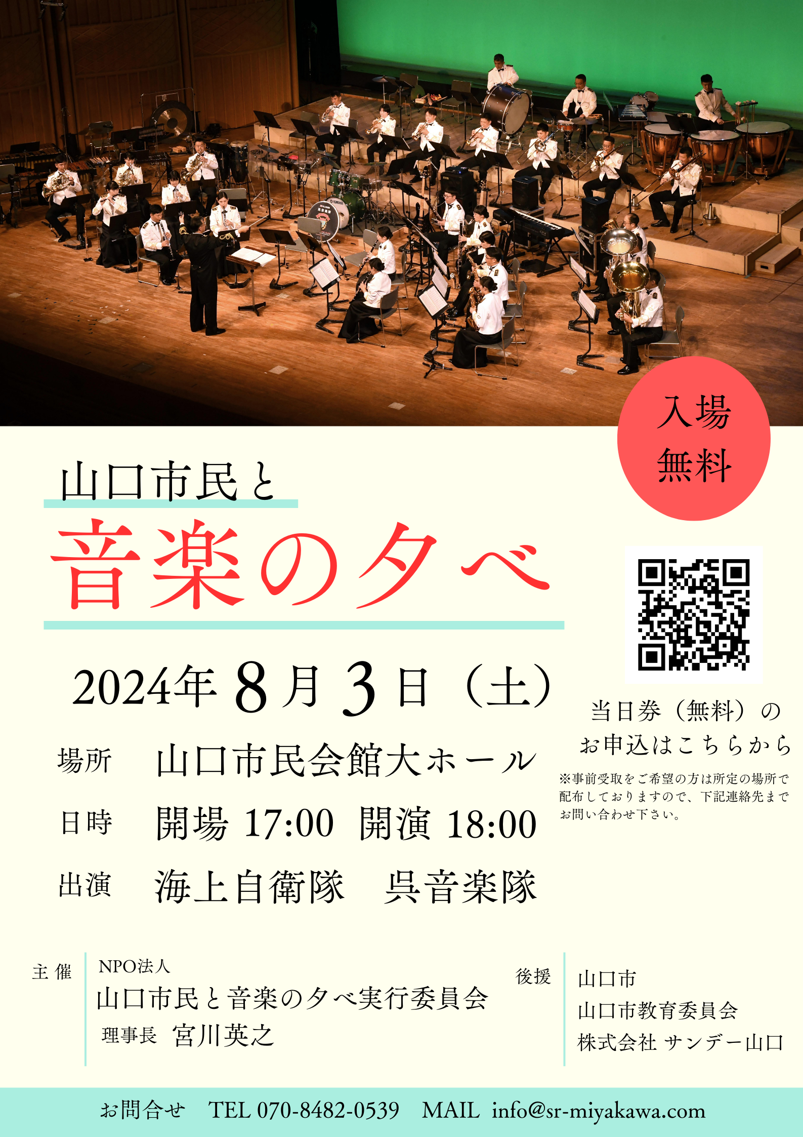 海上自衛隊呉音楽隊をお招きして演奏していただきます。クラシックからポップミュージックまで幅広い演奏ですのでお楽しみ下さい。皆様のご来場お待ち申し上げております。