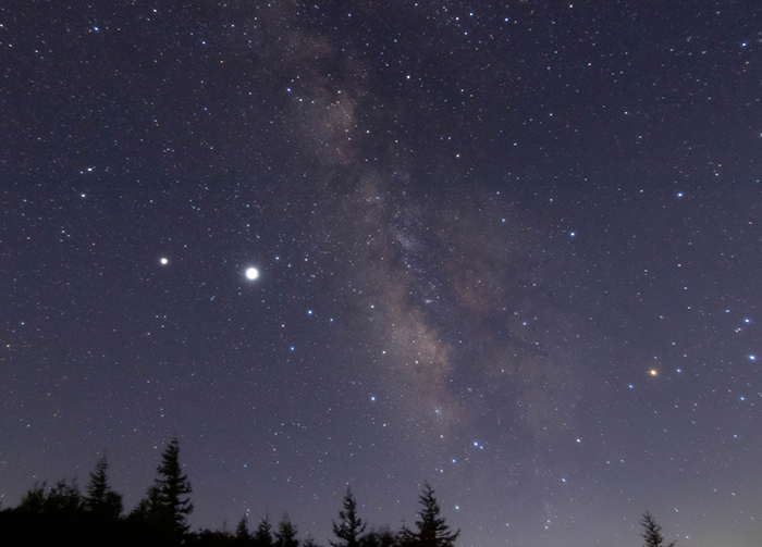 8月は晴れる日が多く夜空を観望しやすい季節です。見どころは、なんと言っても こと座のベガ、わし座のアルタイル、はくちょう座のデネブが描く「夏の大三角」。そこから南の空へと続く天の川も一緒に楽しむことができます。