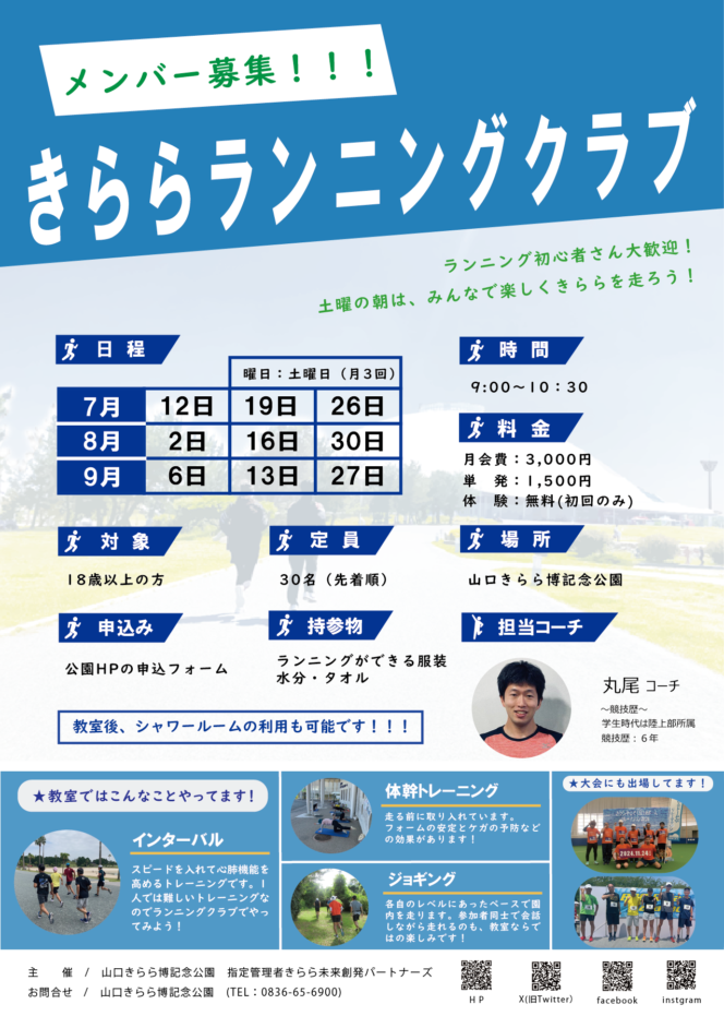 中止のご案内は、募集締め切りの10月15日以降に山口きらら博記念公園のホームページやSNSにてご案内いたします。