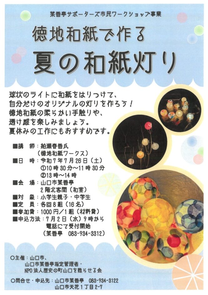 (小学生は保護者と二人一組でひとつの作品を制作)申し込み方法:電話(083-934-3312)