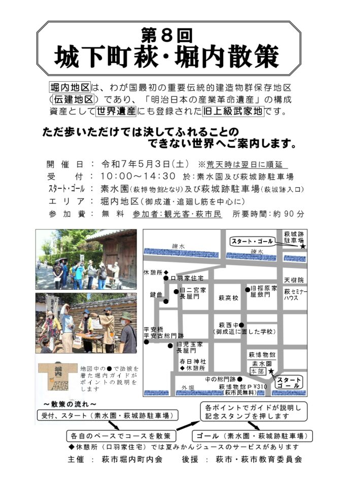 萩市:2026年1月17日(土)長門市:2025年1月24日(土) 美祢市:2026年1月10日(土)