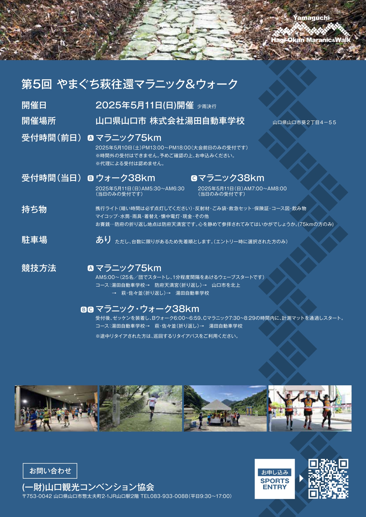 マラニック75km、マラニック38km、ウォーク38kmの3つの種目があります。
