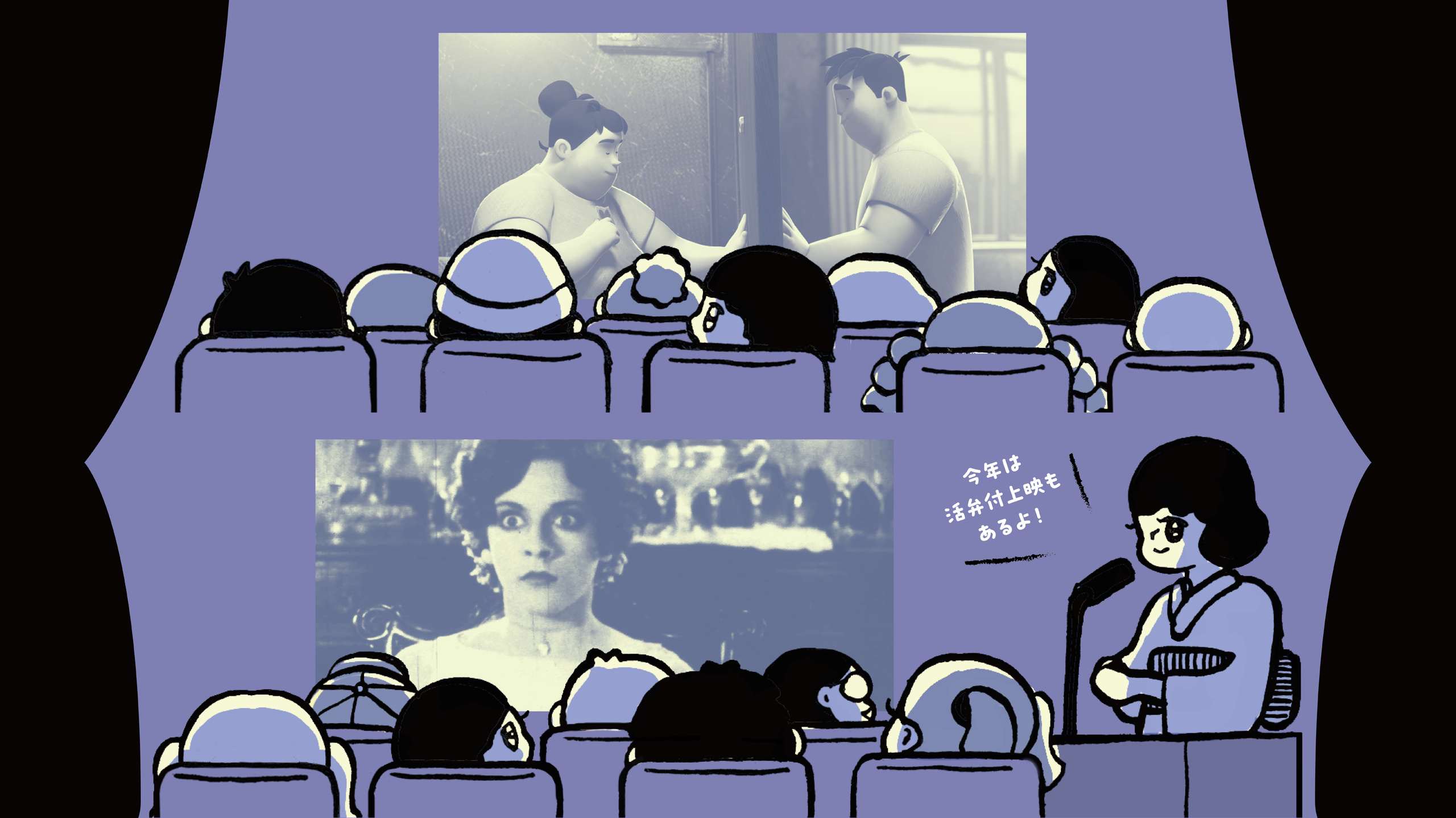 3回目となる今回は、無声映画に合わせてセリフや背景を説明する活動弁士付き上映(通称カツベン)の短編映画も加わり、日本や外国のレトロな短編映画も上映。出演する活動弁士は山口県出身の山城秀之、女性の細やかな表現に定評のある山内菜々子、そして最年少弁士・24歳の尾田直彪の3人が登場!アニメーションやコメディを中心にした、まだカツベンを観たことのない方におすすめのラインナップです。
