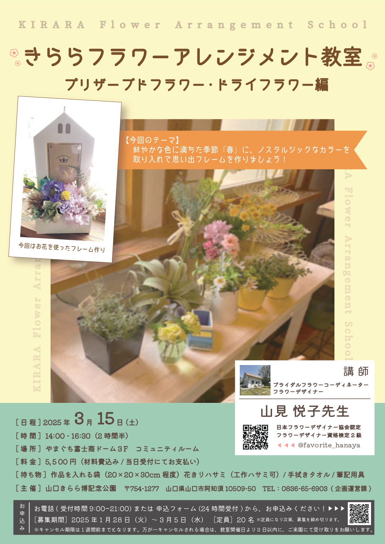 【要申込】きららフラワーアレンジメント教室 プリザーブドフラワー・ドライフラワー編