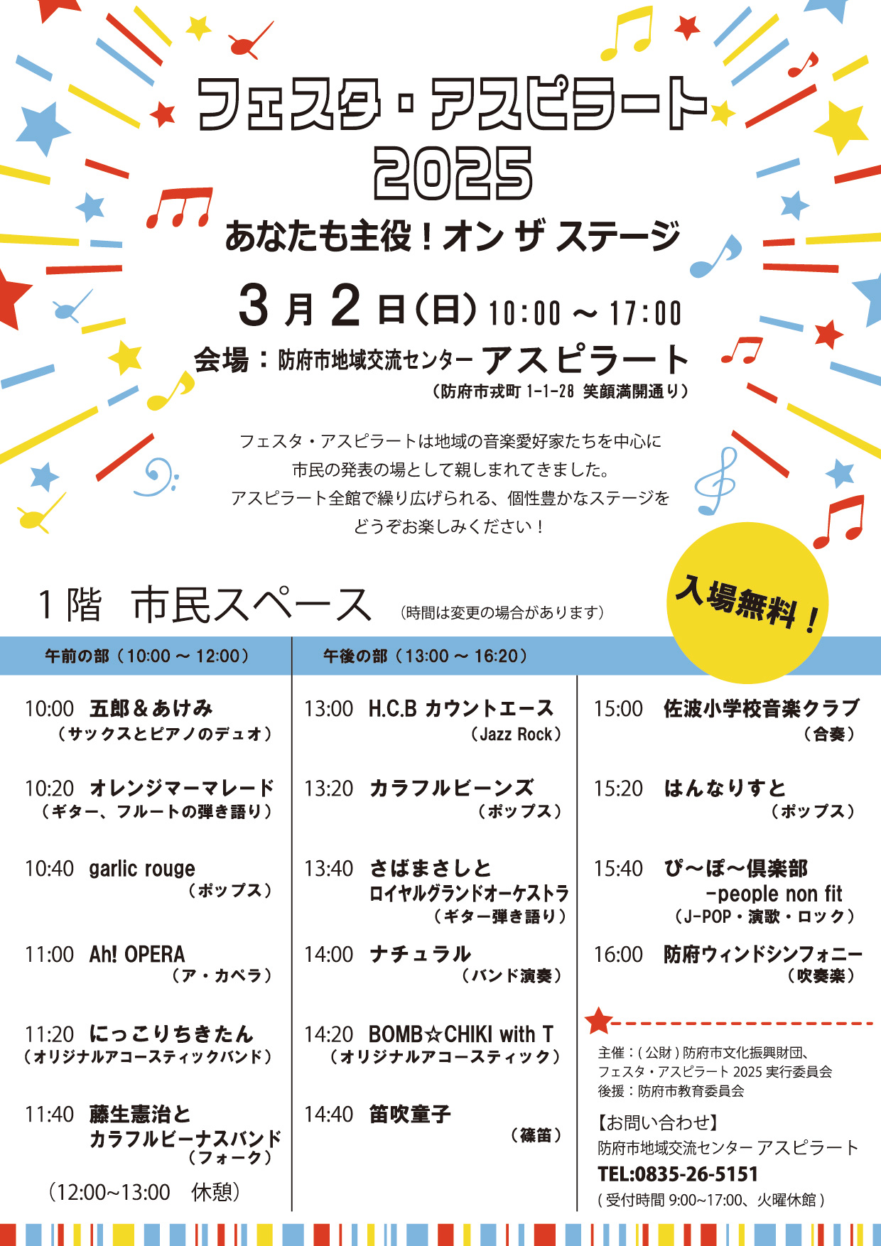 ノンジャンルのコンサートでアスピラート全館を盛り上げます!