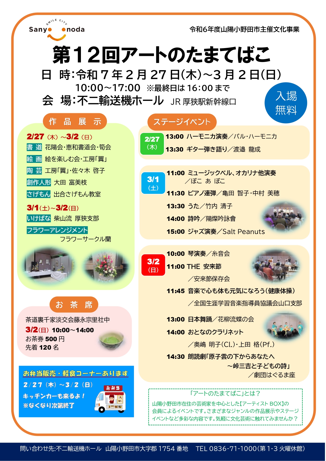 令和7年2月27日(木曜日)~3月2日(日曜日)に【アーティストBOX】による「第12回アートのたまてばこ」を開催します。