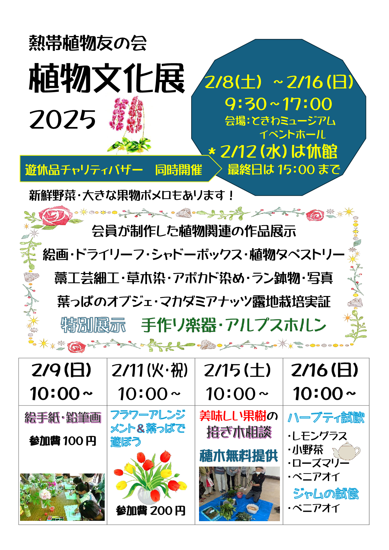熱帯植物友の会「植物文化作品展」ワークショップ有り!