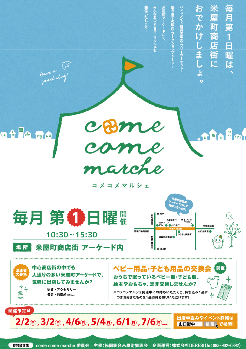 毎月第1日曜、米屋町商店街にて開催しているハンドメイドイベント【コメコメマルシェ】。2025年4月6日(日)開催いたします!物々交換のできる【ベビー用品・子ども用品の交換会】も同時開催!