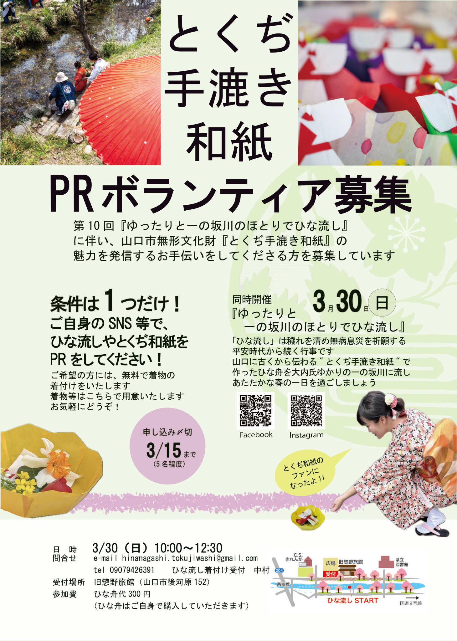 イベント当日、ひな流しで流す「ひな舟」に使用される山口市の無形文化財 【徳地和紙】、その魅力をSNSでPRする ”PRボランティア” を募集しています🌸