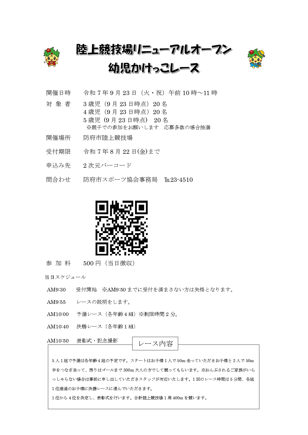 防府市スポーツ協会では、幼児かけっこレースを開催します。