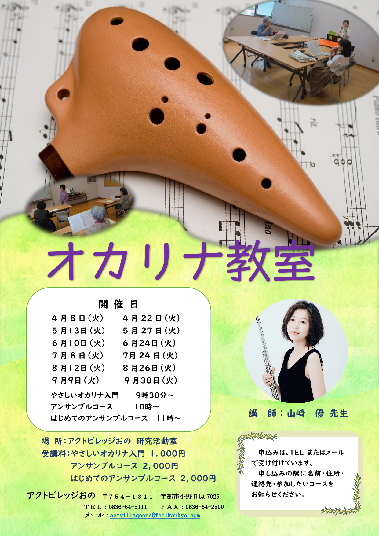 やさしいオカリナ入門 9:30~ /アンサンブルコース 10:00~ /はじめてのアンサンブルコース 11:00~