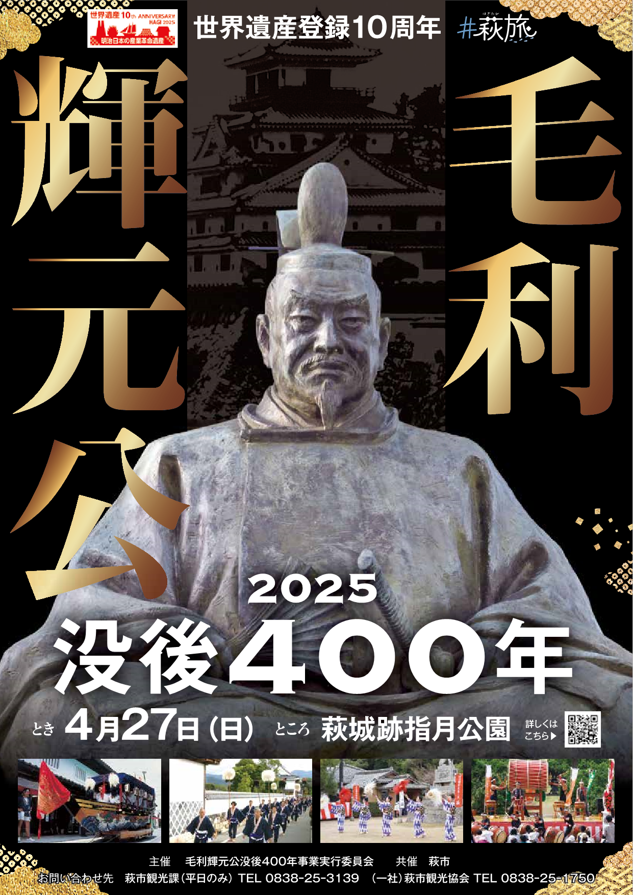 毛利輝元公が亡くなられて400年を迎える4月27日、萩城跡指月公園をメイン会場に、城下町周辺にてイベントを実施します。