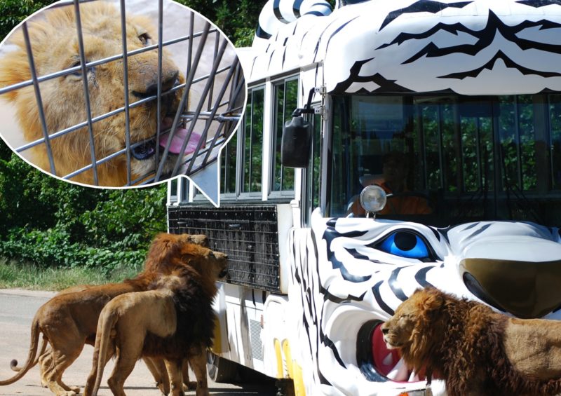 エサやりバスに乗車!ドキドキわくわく大迫力の猛獣に大興奮