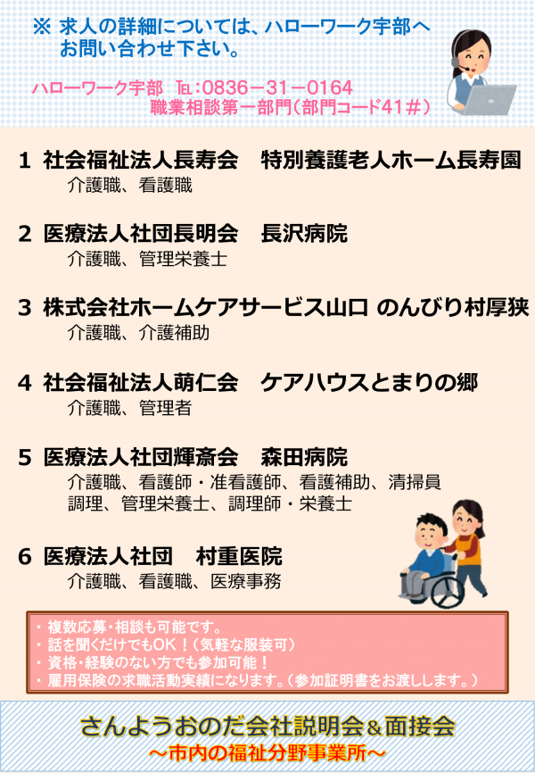 山陽小野田市内に就業地を有している医療・福祉求人事業所による説明会および面接会を開催します。
