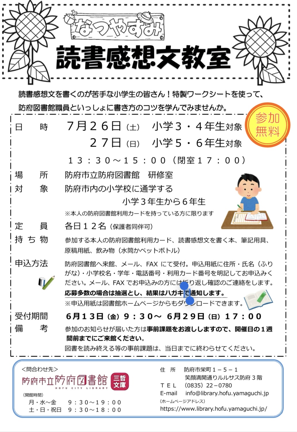 申し込み先:防府図書館へ来館・メール・FAXで受付します。