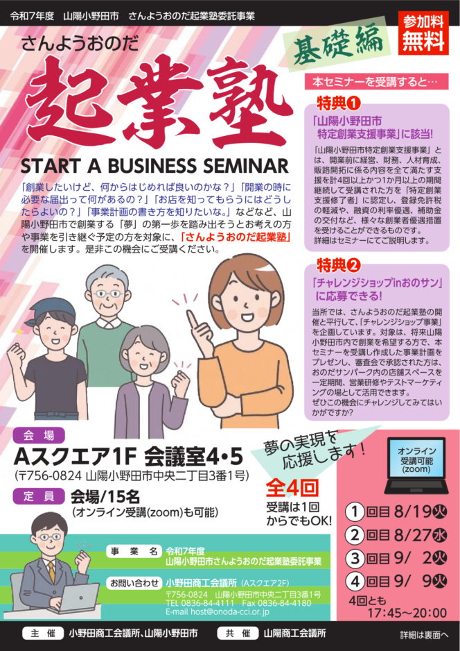 申込み・問合せ先:⼭陽⼩野⽥市保健センター電話71-1814
