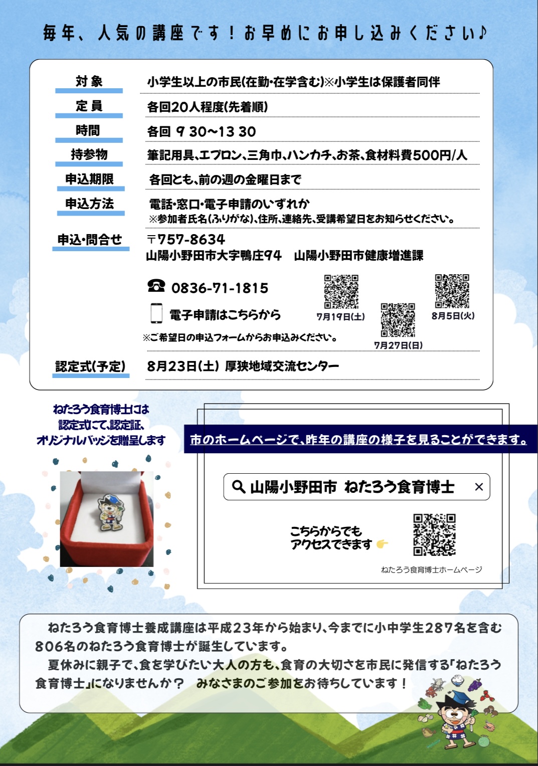 市では、体験などを通して食に関する知識を身につけることで、健全な食生活を実践し、食育の大切さを広くPRできる人を「ねたろう食育博士」として認定しています。今までに小中学生287名を含む806名のねたろう食育博士が誕生しています。