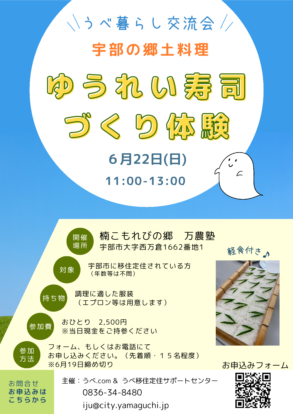 【要申込】うべ暮らし交流会「ゆうれい寿司づくり体験づくり体験」