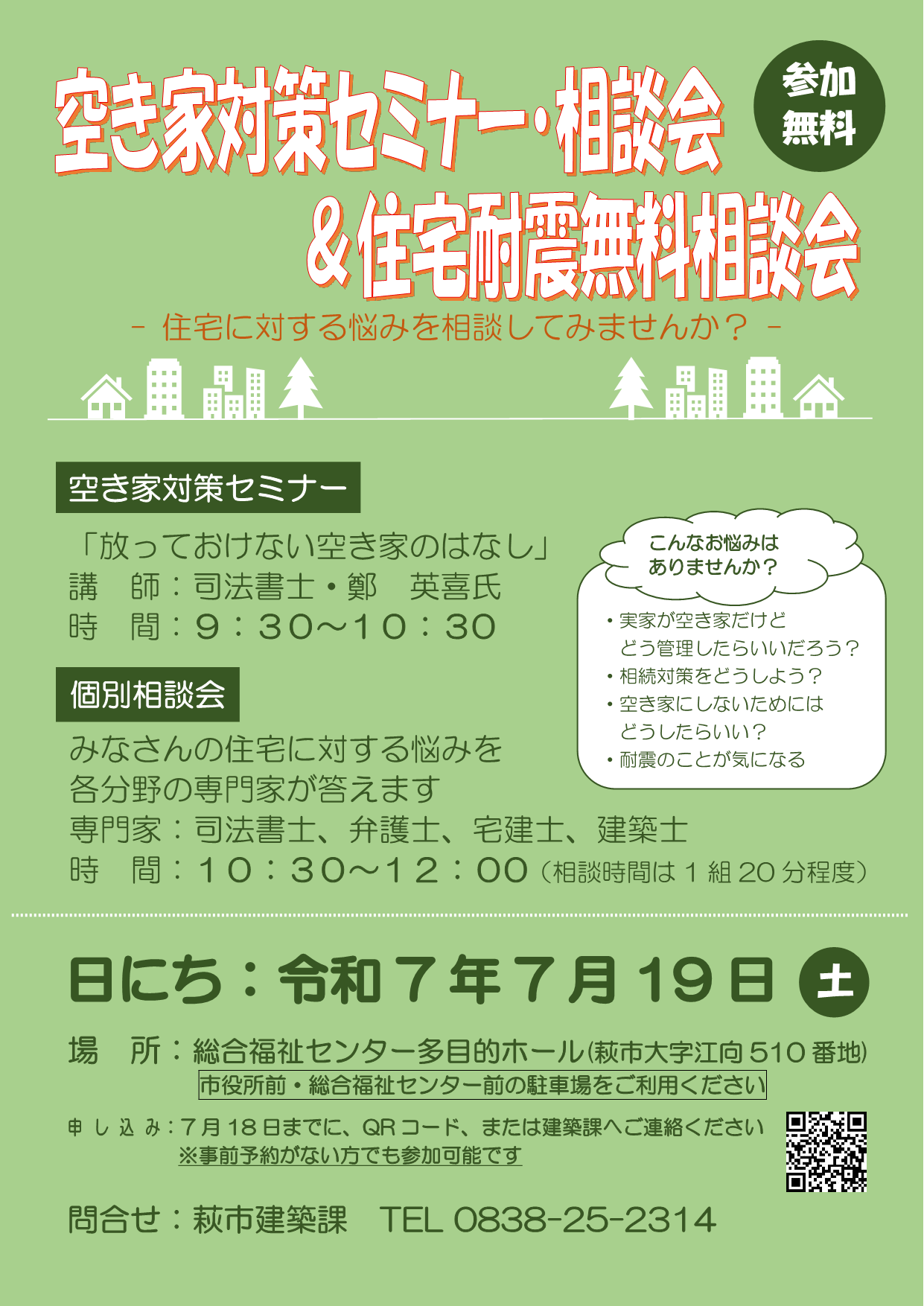 【要申込】空き家対策セミナー・相談会&住宅耐震無料相談会