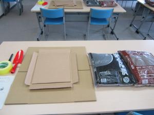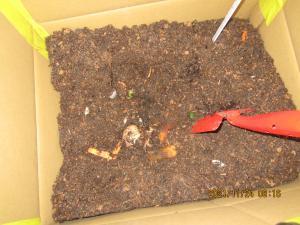 ダンボールと基材を使い、微生物の働きで、生ごみを分解してたい肥にします。