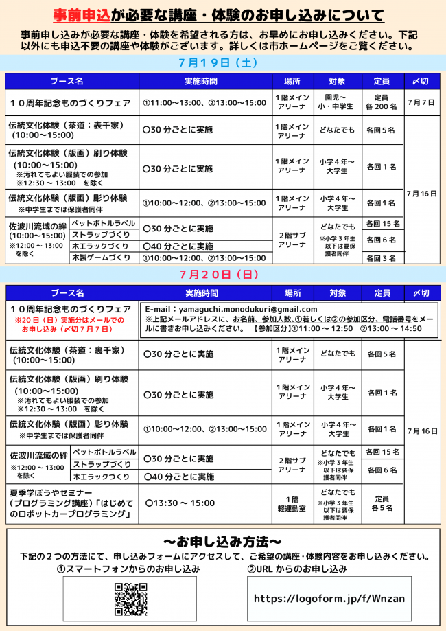 (申込受付期間:6月30日(月)から7月17日(木)まで ※ものづくりフェアのみ7月7日(月)まで)