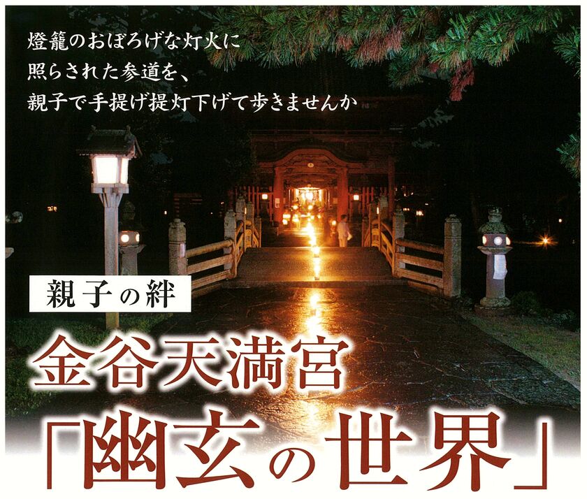 菅原道真を祭神とし、昔から天神様と呼び親しまれてきた金谷天満宮にて開催されます。燈籠のおぼろげな灯火で照らされた参道を、親子で手提げ提灯を下げて歩きませんか。