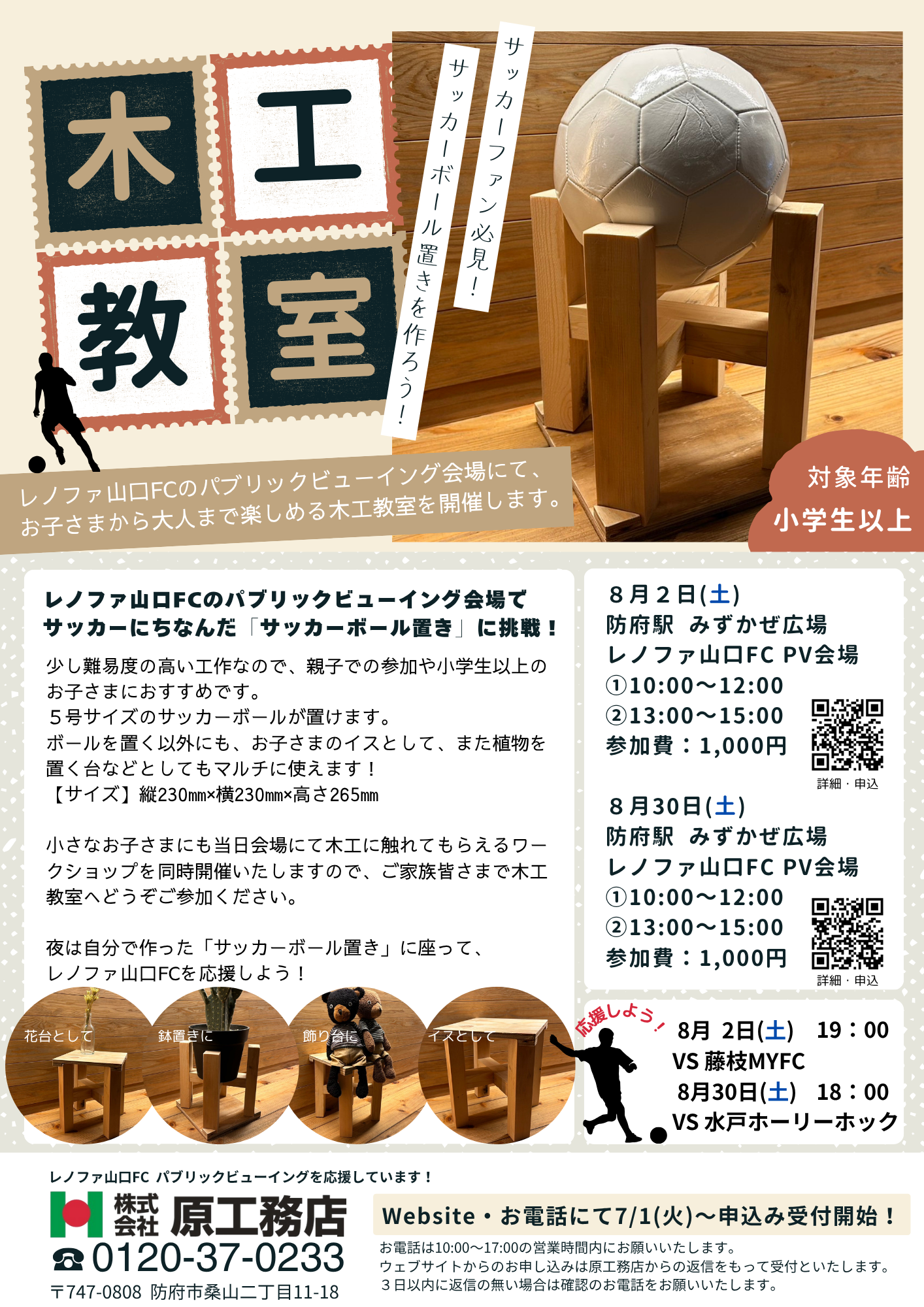 【要申込】木工教室「マルチに使えるサッカーボール置き」をつくろう!