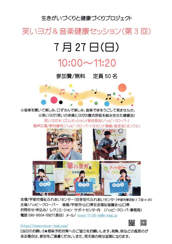「笑いヨガ、歌声広場、オカリナ演奏広場、リズムセッション」