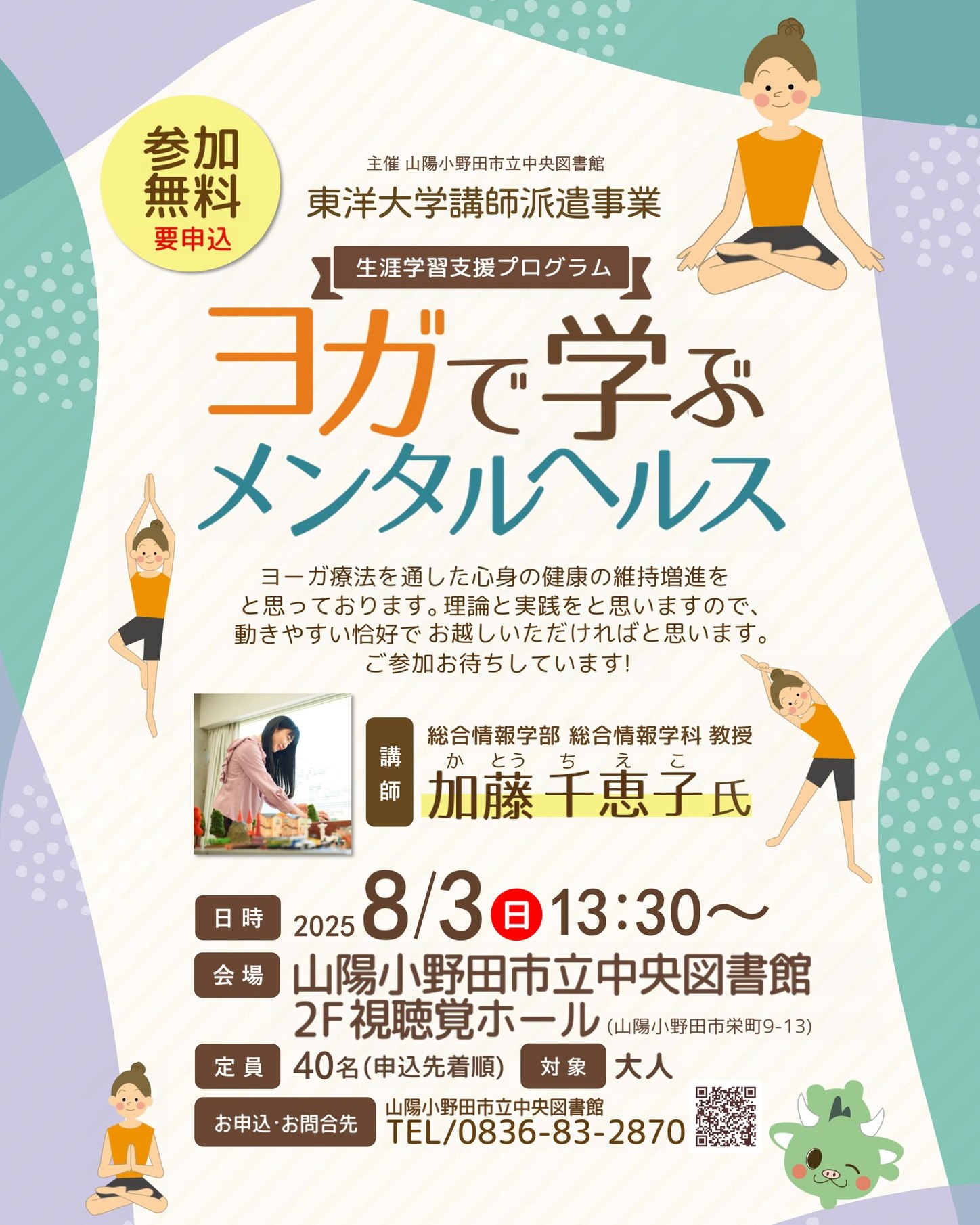 【要申込】中央図書館で東洋大学講師派遣事業「ヨガで学ぶメンタルヘルス」