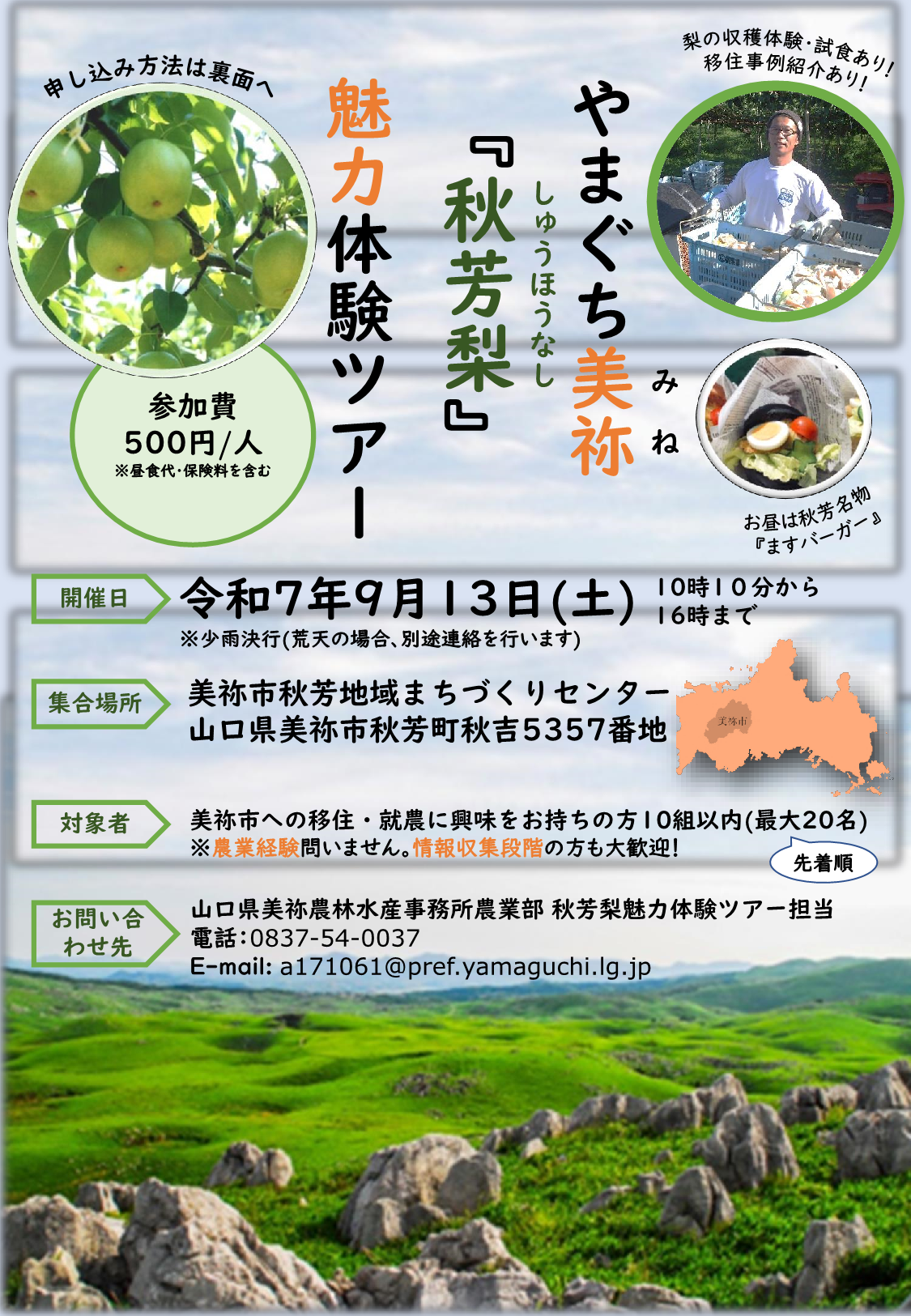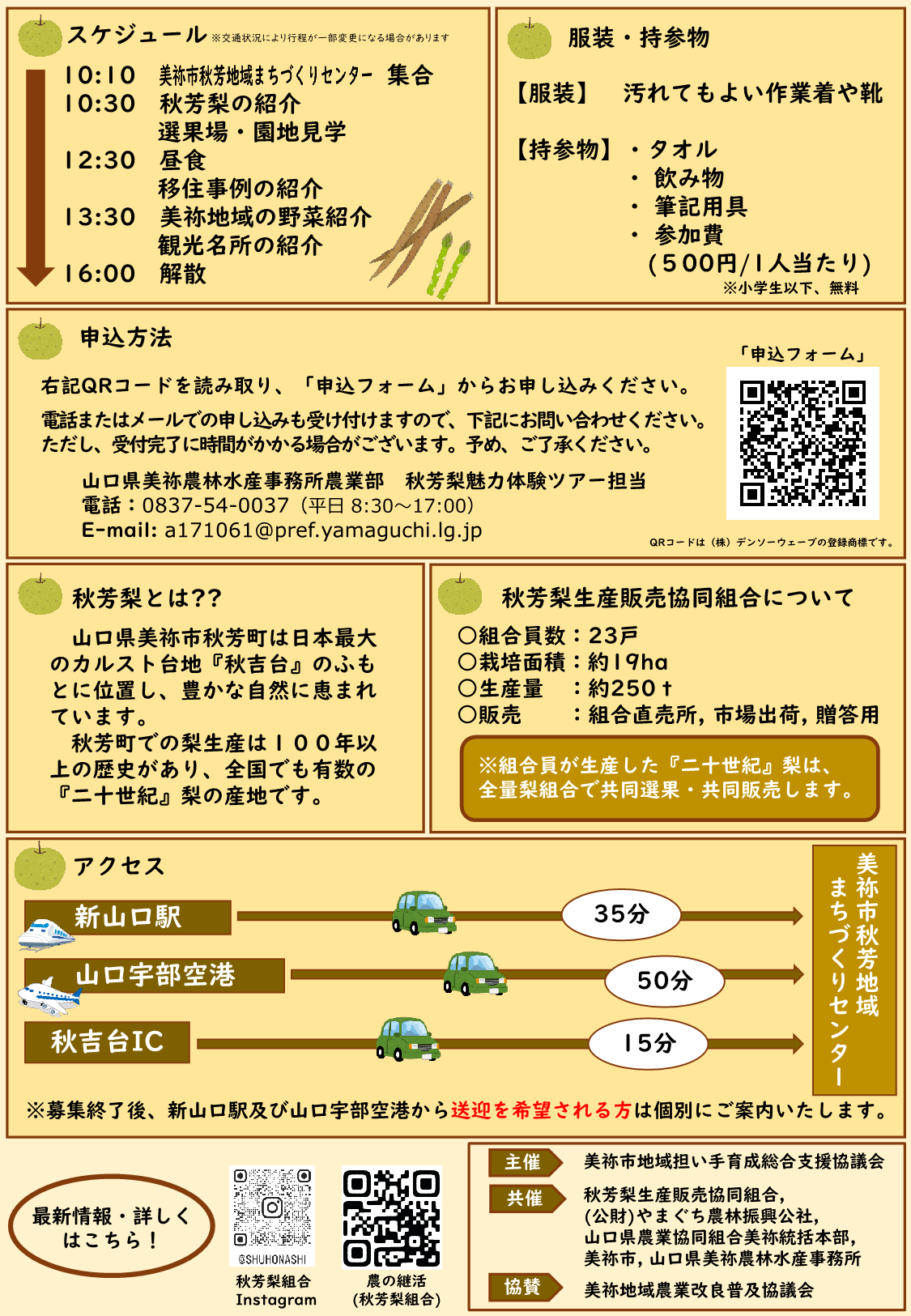 山口県美祢農林水産事務所 農業部 秋芳梨魅力体験ツアー担当(受付時間 平日8:30~17:00)