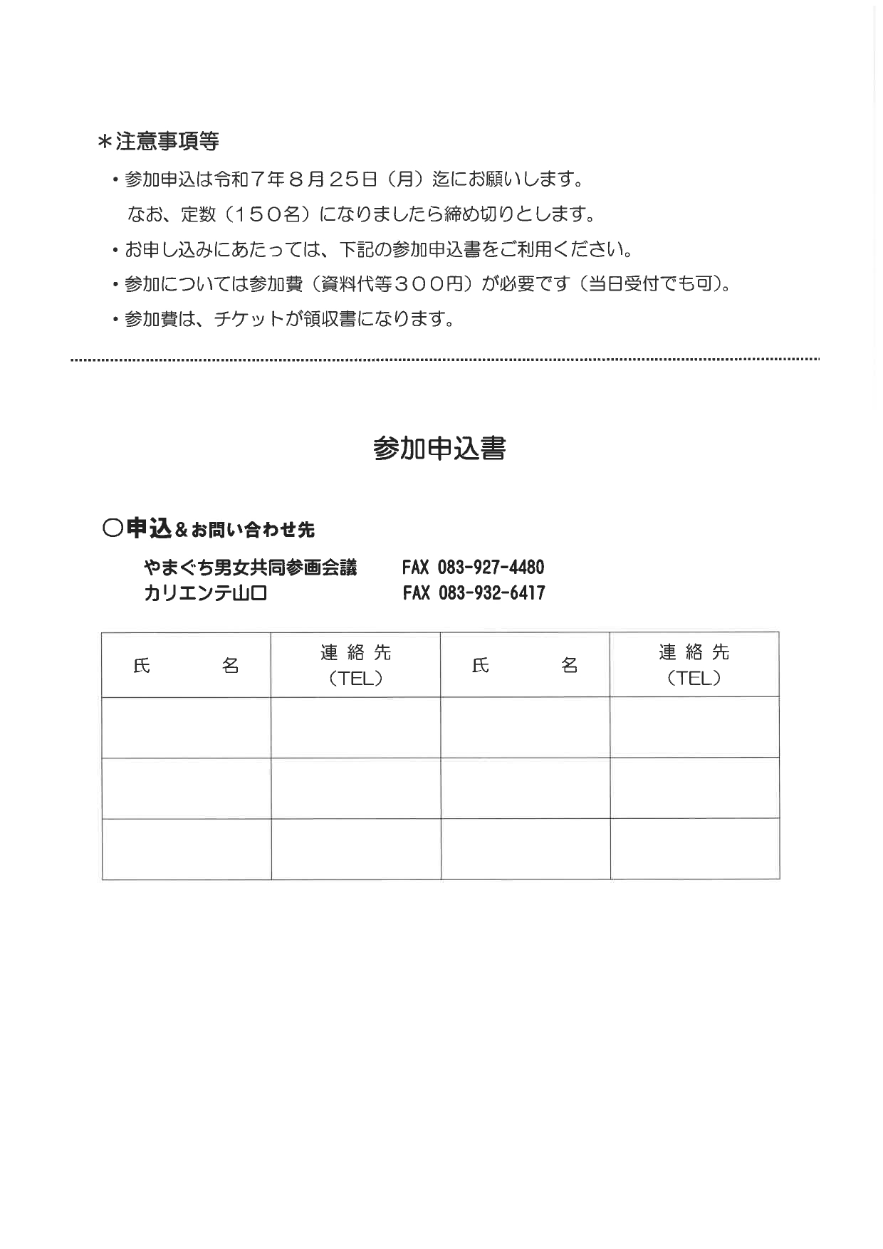 NPO法人やまぐち男女共同参画会議 電話・Fax 083-927-4480