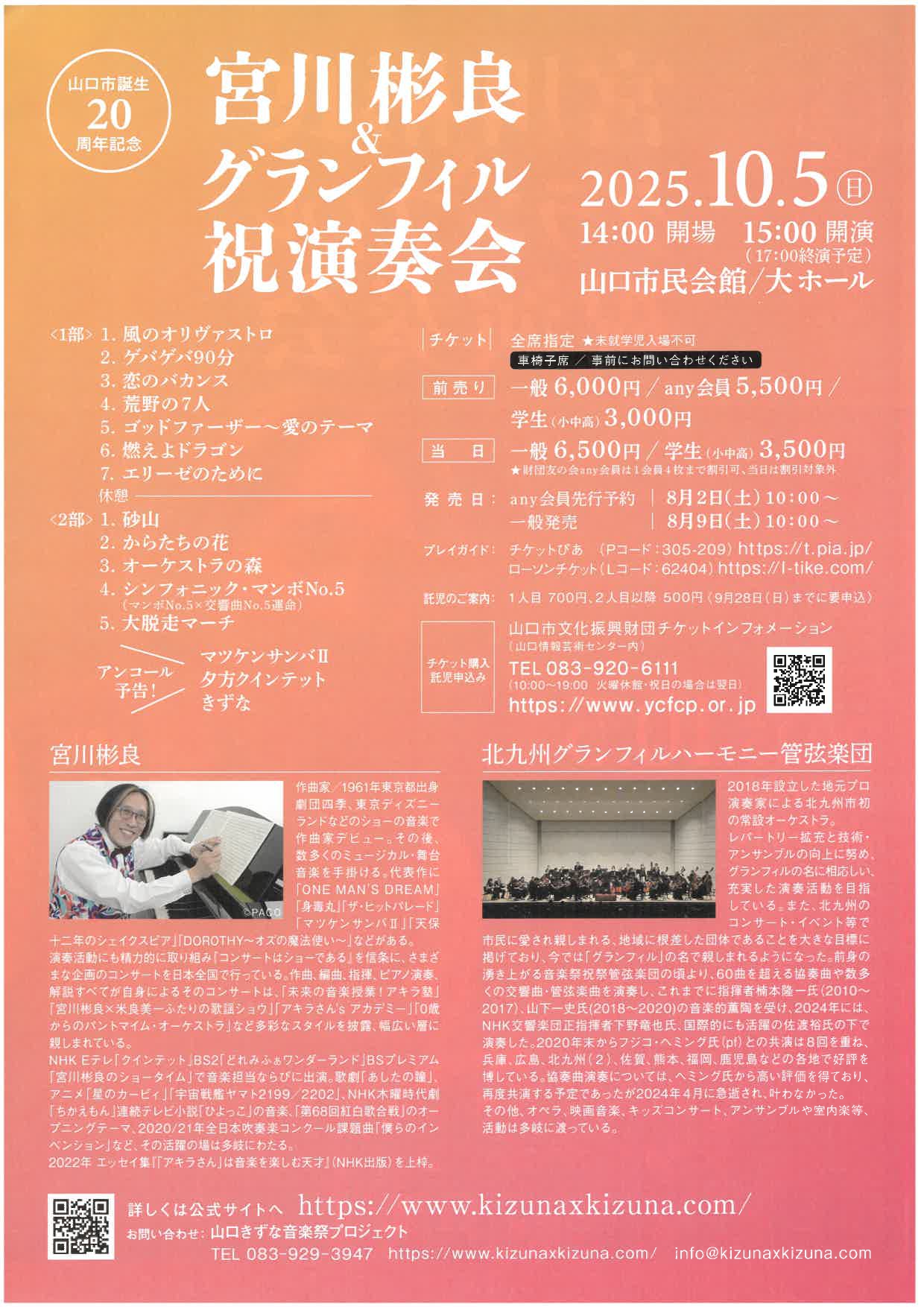 作曲家・宮川彬良氏と北九州グランフィルハーモニー管弦楽団による演奏会が山口市民会館で開催されます!!