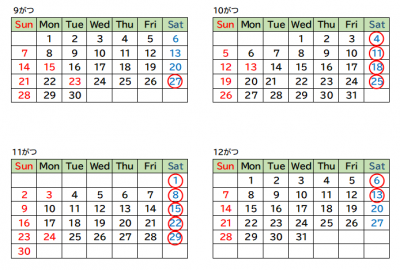 2025年(ねん)9月(がつ)27日(にち)から2025年(ねん)12月(がつ)13日(にち)までの毎週土曜日(まいしゅうどようび)