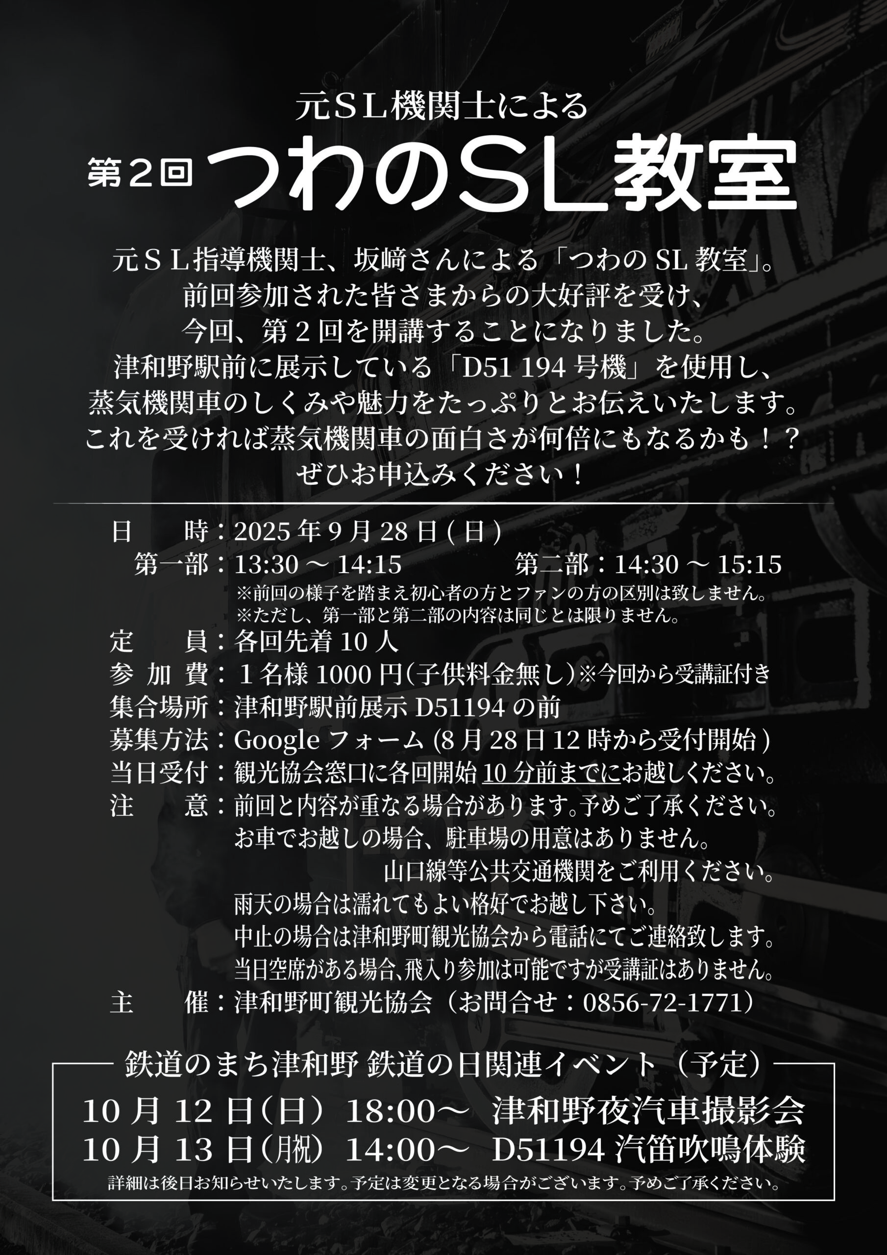 9月28日(日)「第2回 つわのSL教室」を開講いたします。