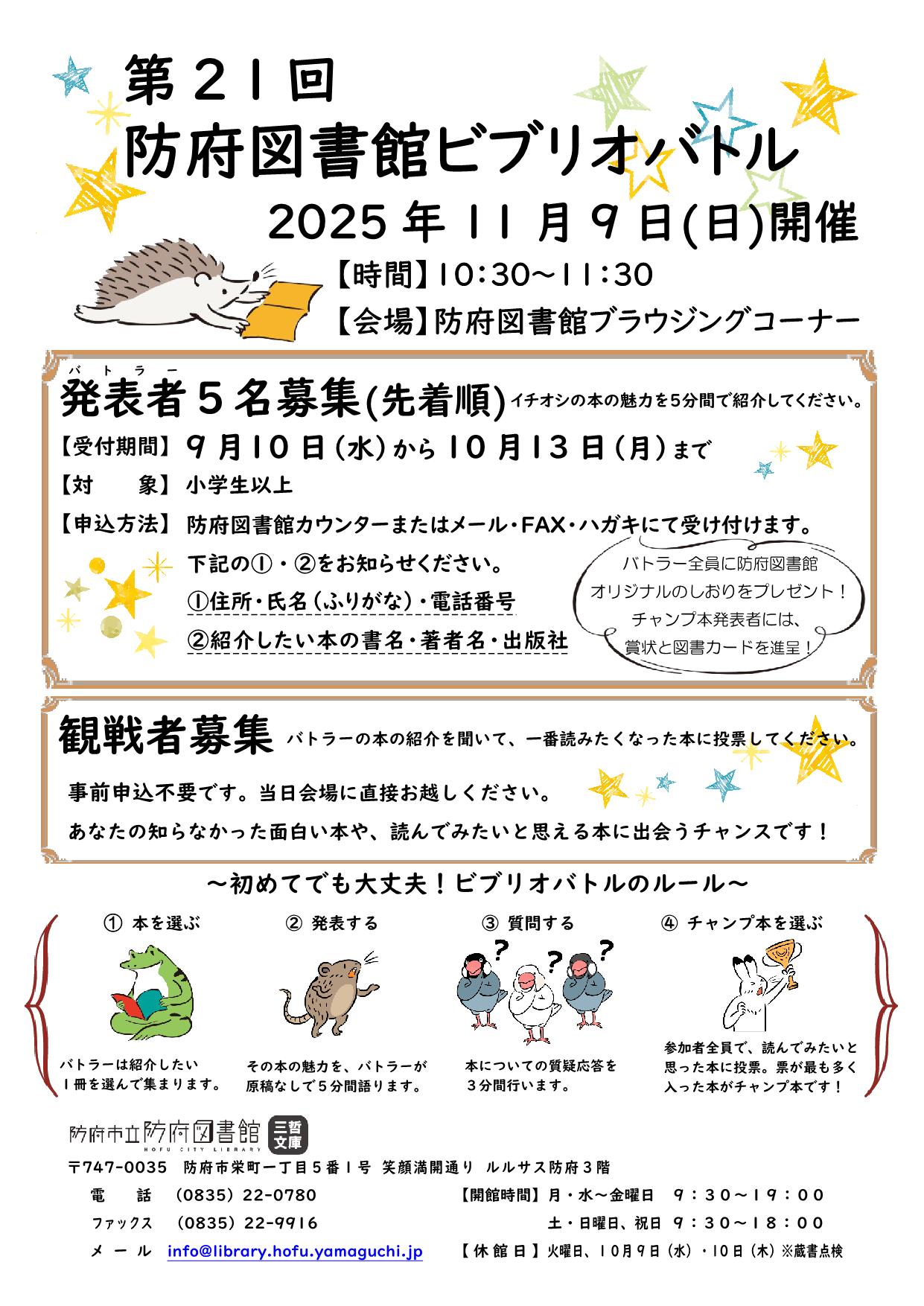 11月9日に開催予定のビブリオバトル観戦者を募集いたします!
