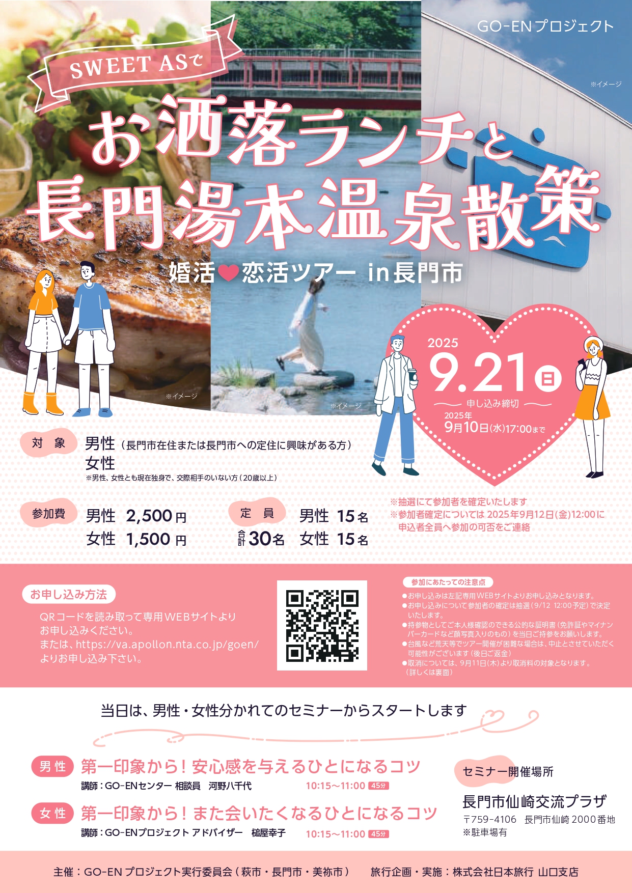 【要申込】「SWEET ASでお洒落ランチと長門湯本温泉散策」婚活恋活ツアー in 長門市