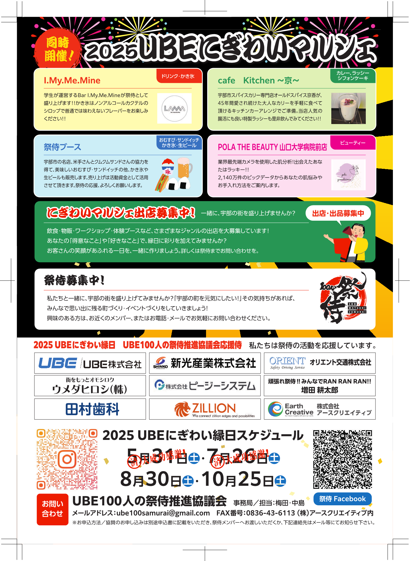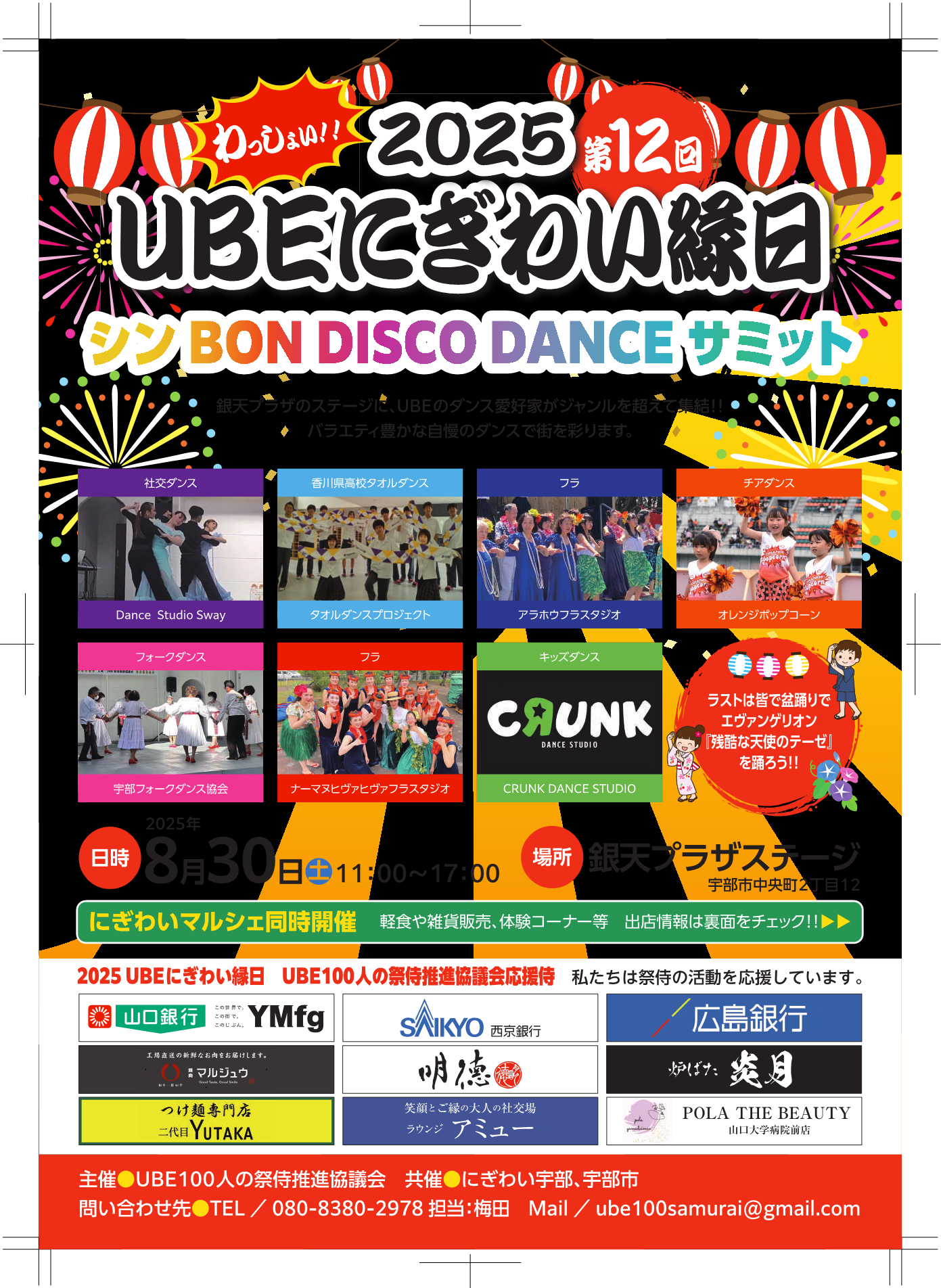 8⽉30⽇(⼟)に中央街区公園(銀天プラザステージ)で第12回UBEにぎわい縁⽇が 開催されます。