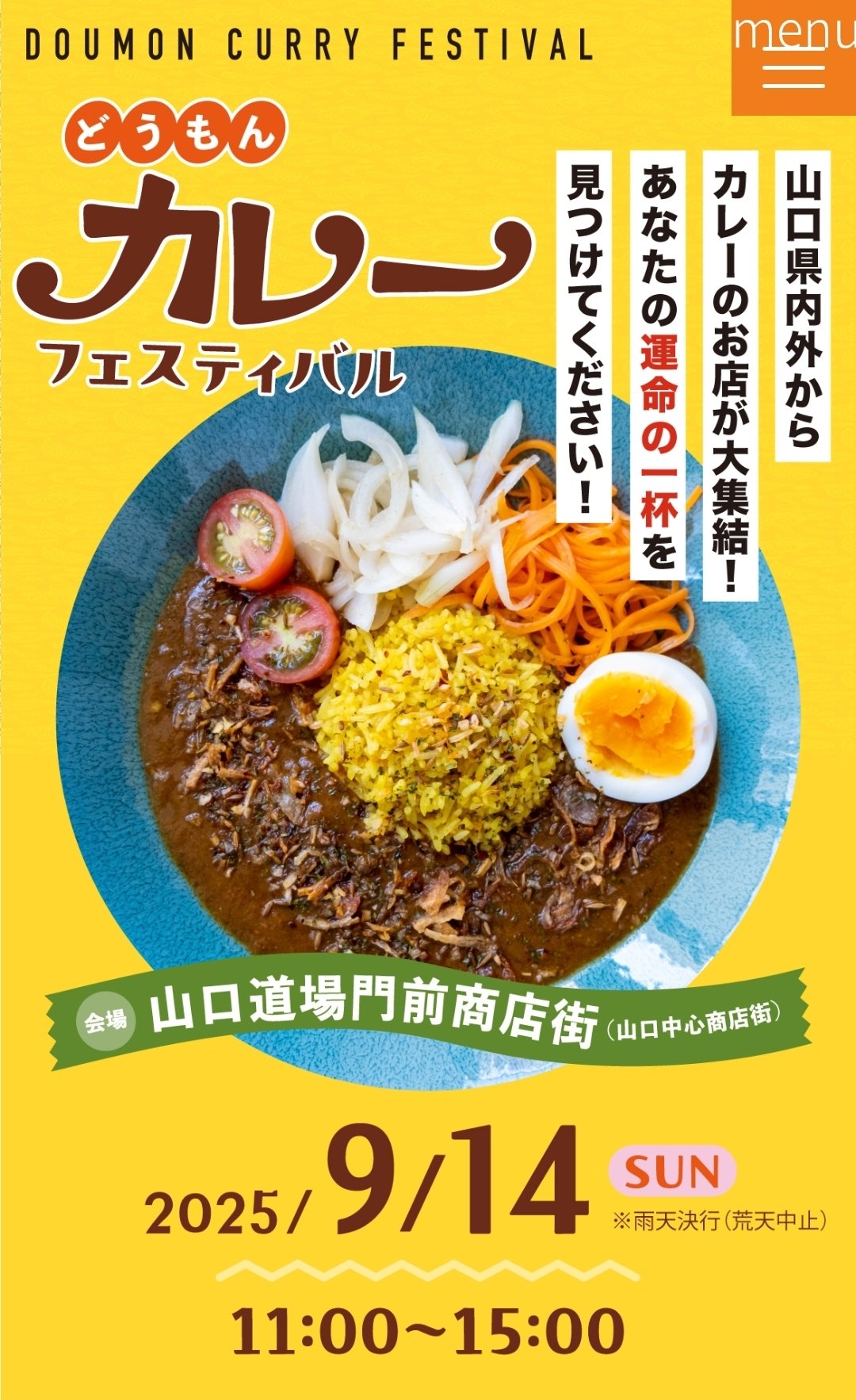 山口県内外のさまざまなカレーのお店が、山口市中心商店街「道場門前商店街」に集まります!!