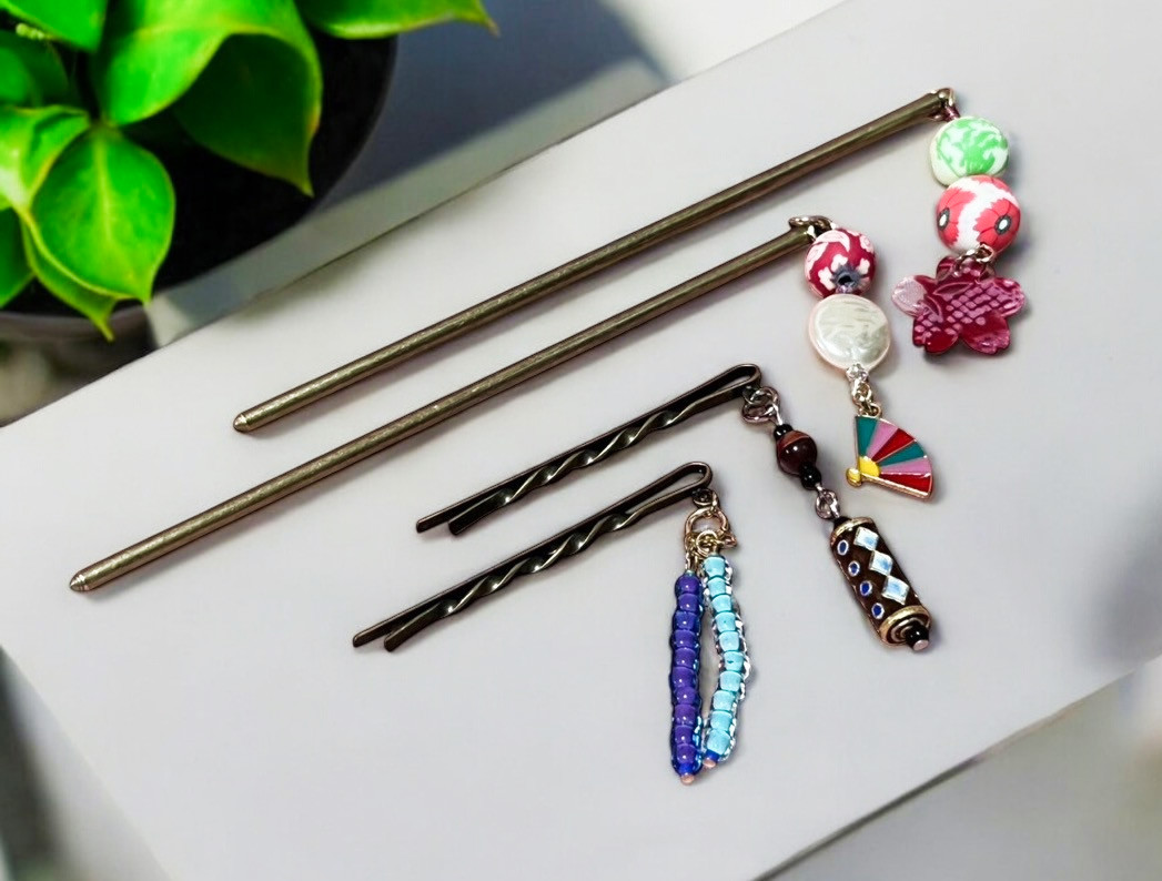 パーツを選んで、自分好みのオリジナルかんざしを作ってみませんか?かんざし風ヘアピンも作れます。