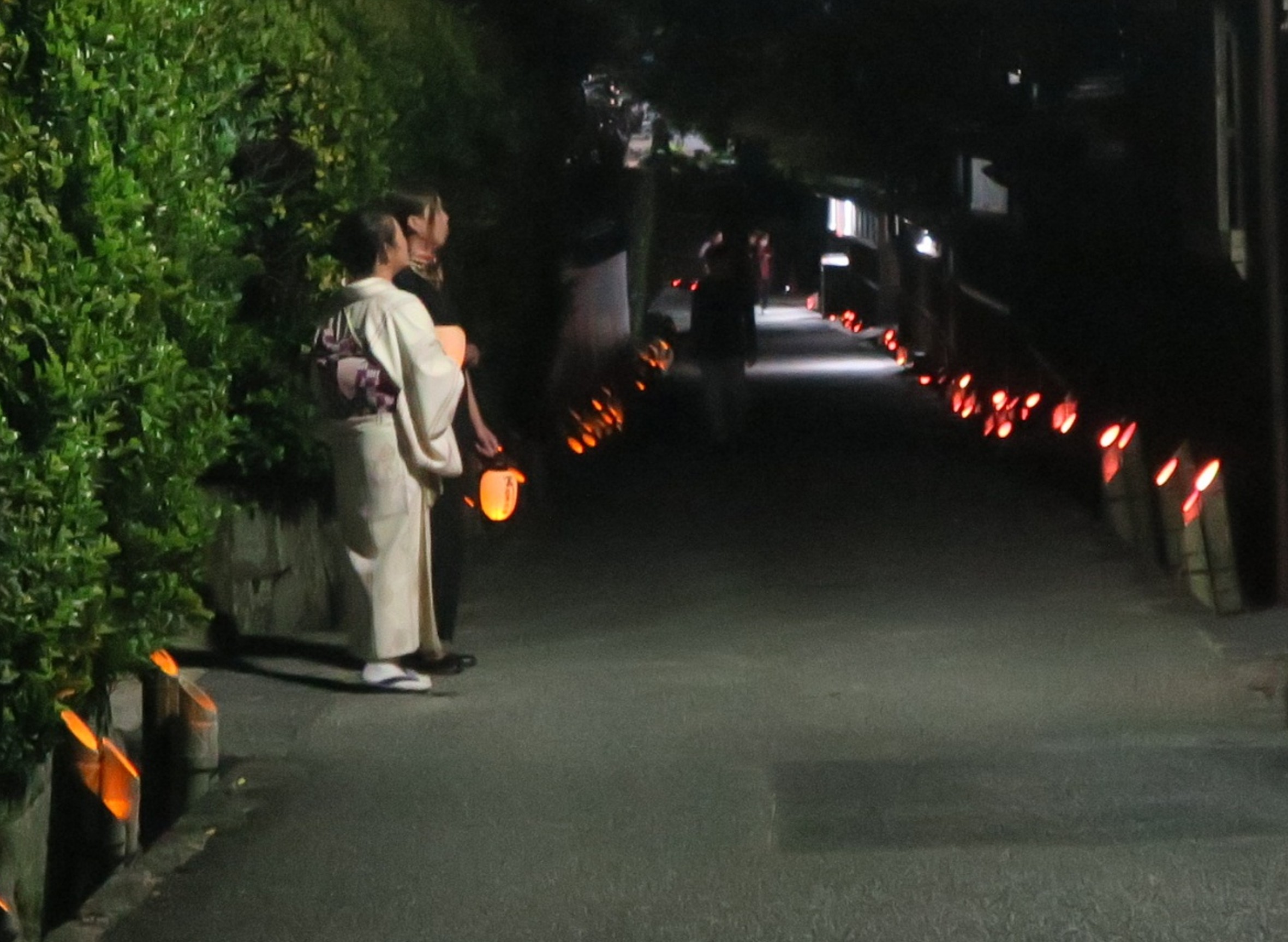 「萩・竹灯路物語」イベントとコラボしたナイトツアー。夜だからこその、城下町をほのかに照らす竹灯路のゆらめく灯りが幻想的!