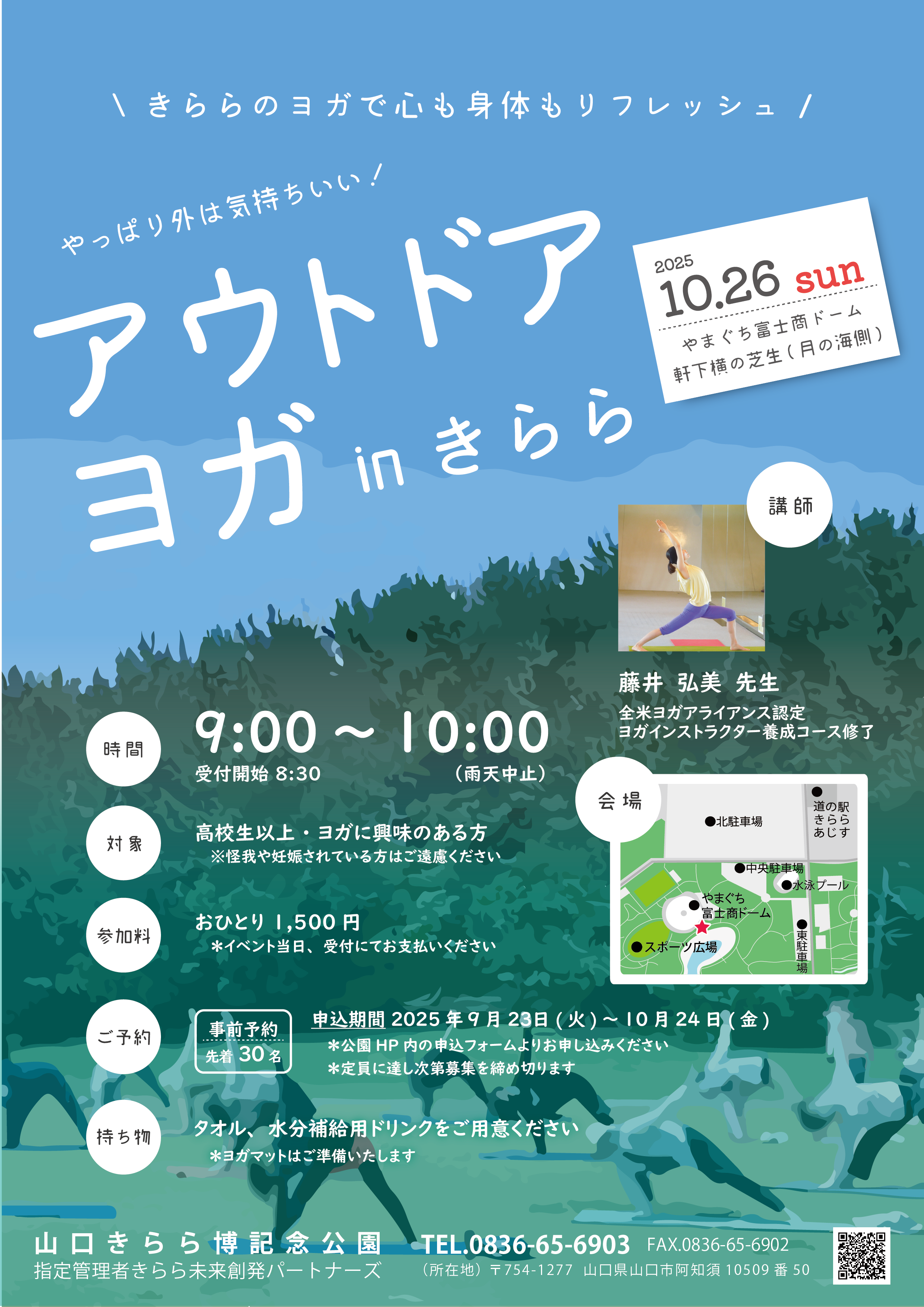 中止のご案内は、前日土曜日18:00頃 または 当日の 8:00 頃山口きらら博記念公園のホームページにてご案内いたします。