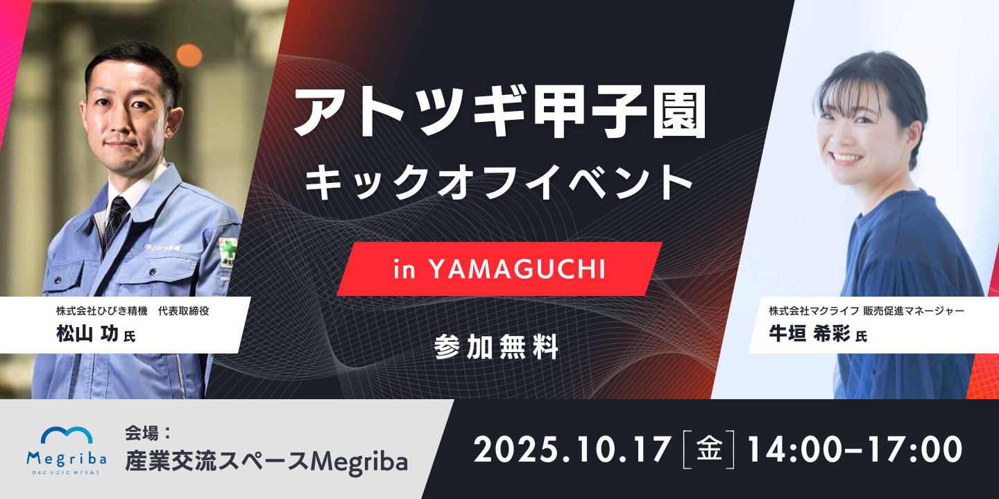 本イベントは、山口県内の後継者・後継予定者の皆様が、アトツギ甲子園の真の価値を深く理解し、自身の事業アイデアを社会に発信する第一歩を踏み出すための啓発イベントです。