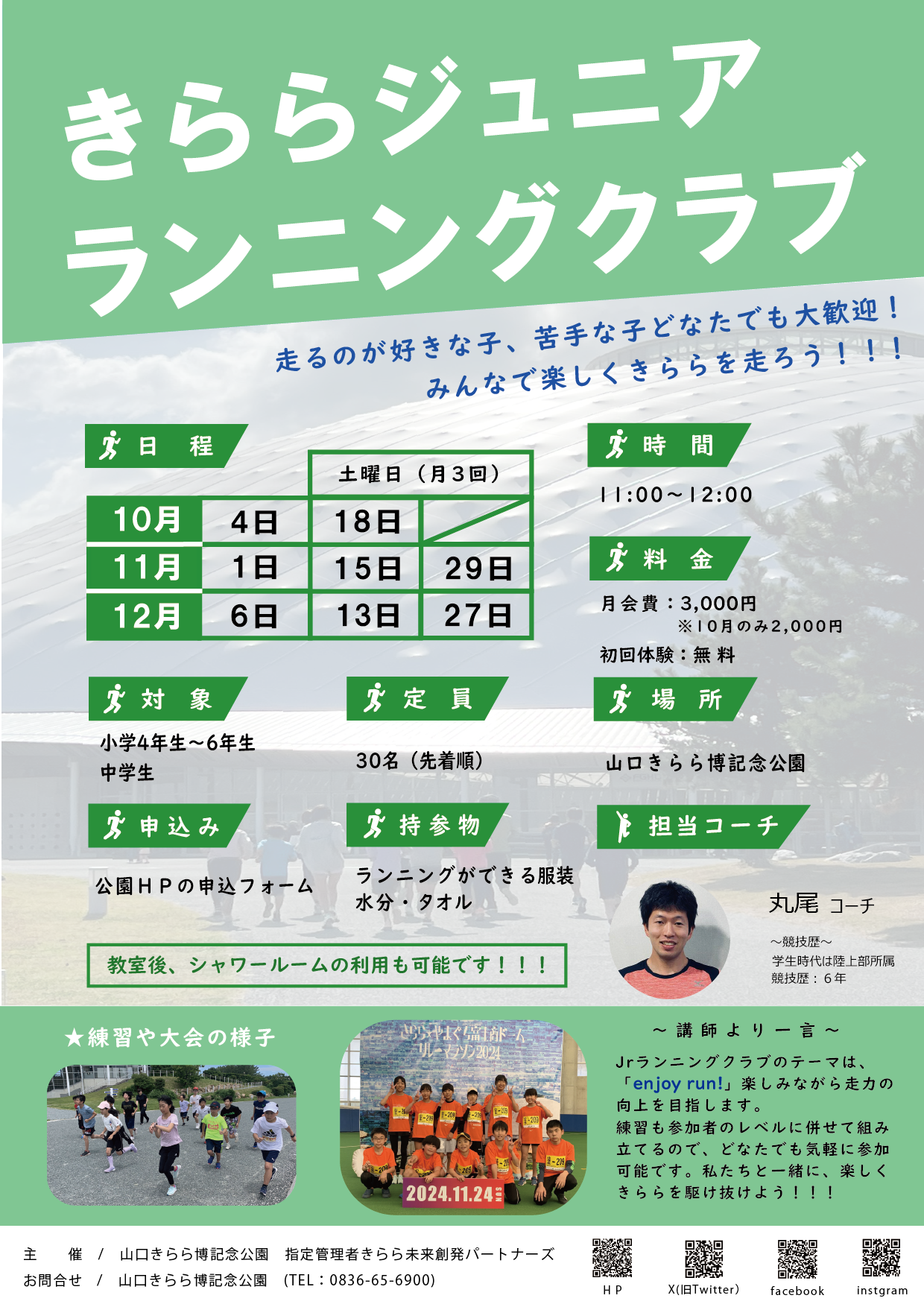 きららJrランニングクラブのテーマは、「enjoy run!」楽しみながら走力の向上を目指します。