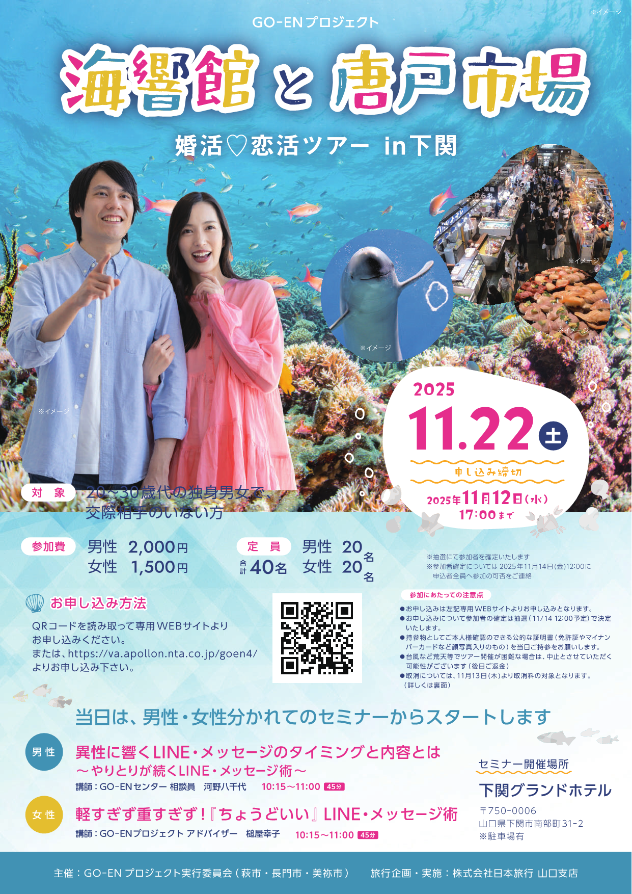 【要申込】「海響館と唐戸市場」婚活恋活ツアー in 下関市