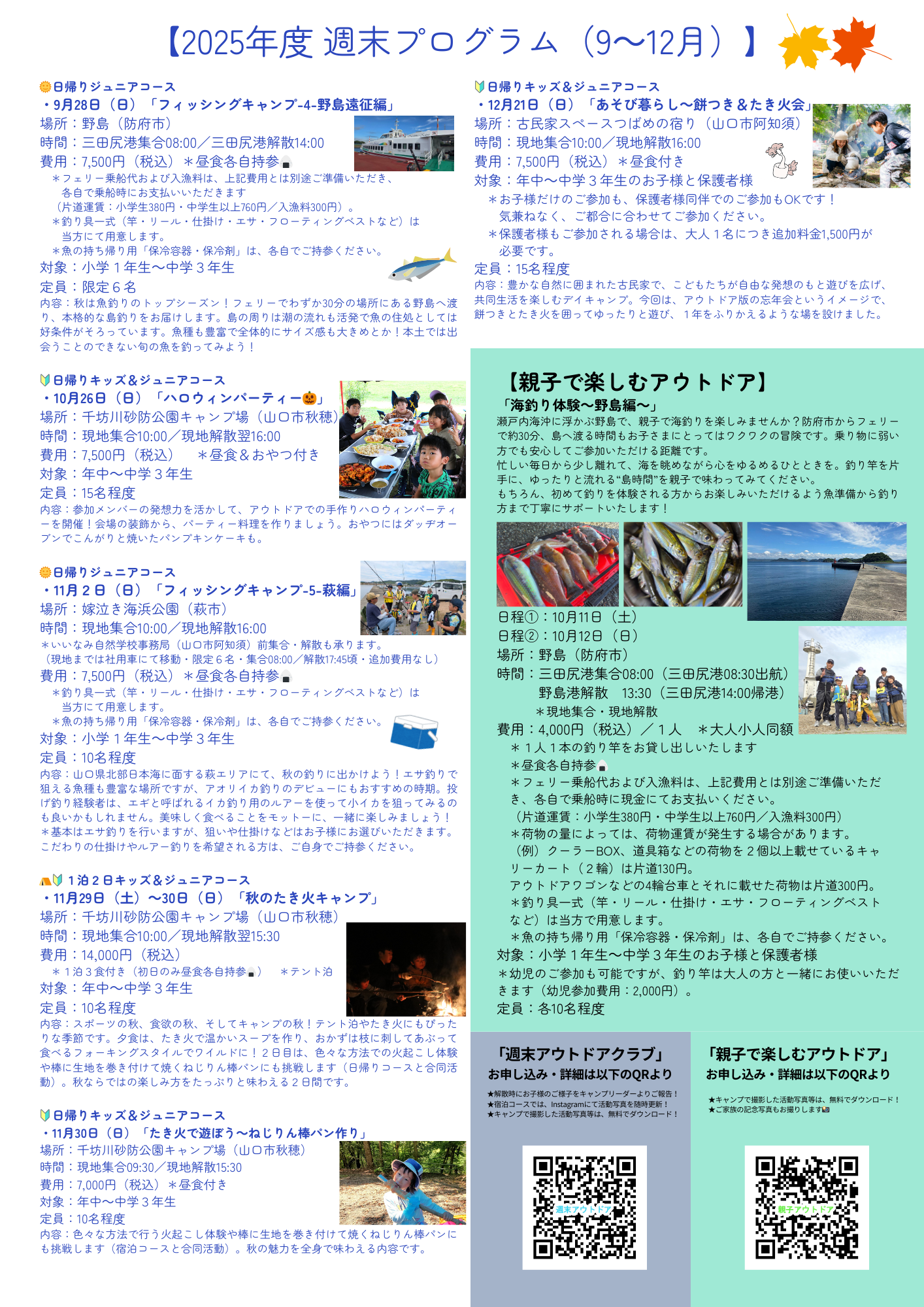 各キャンプの詳細をご覧の上、申し込みフォームへ必用事項をご入力お願いします。
