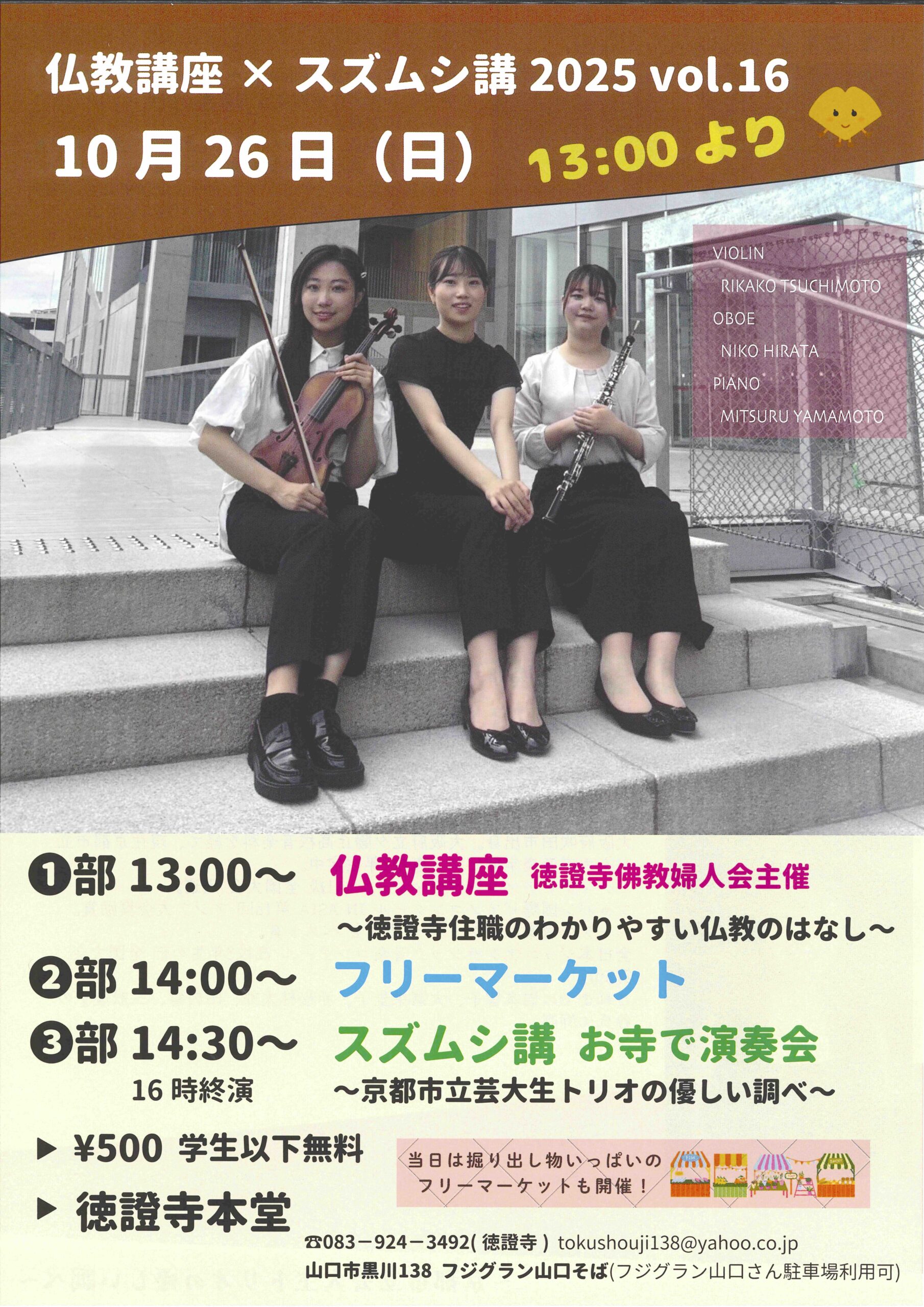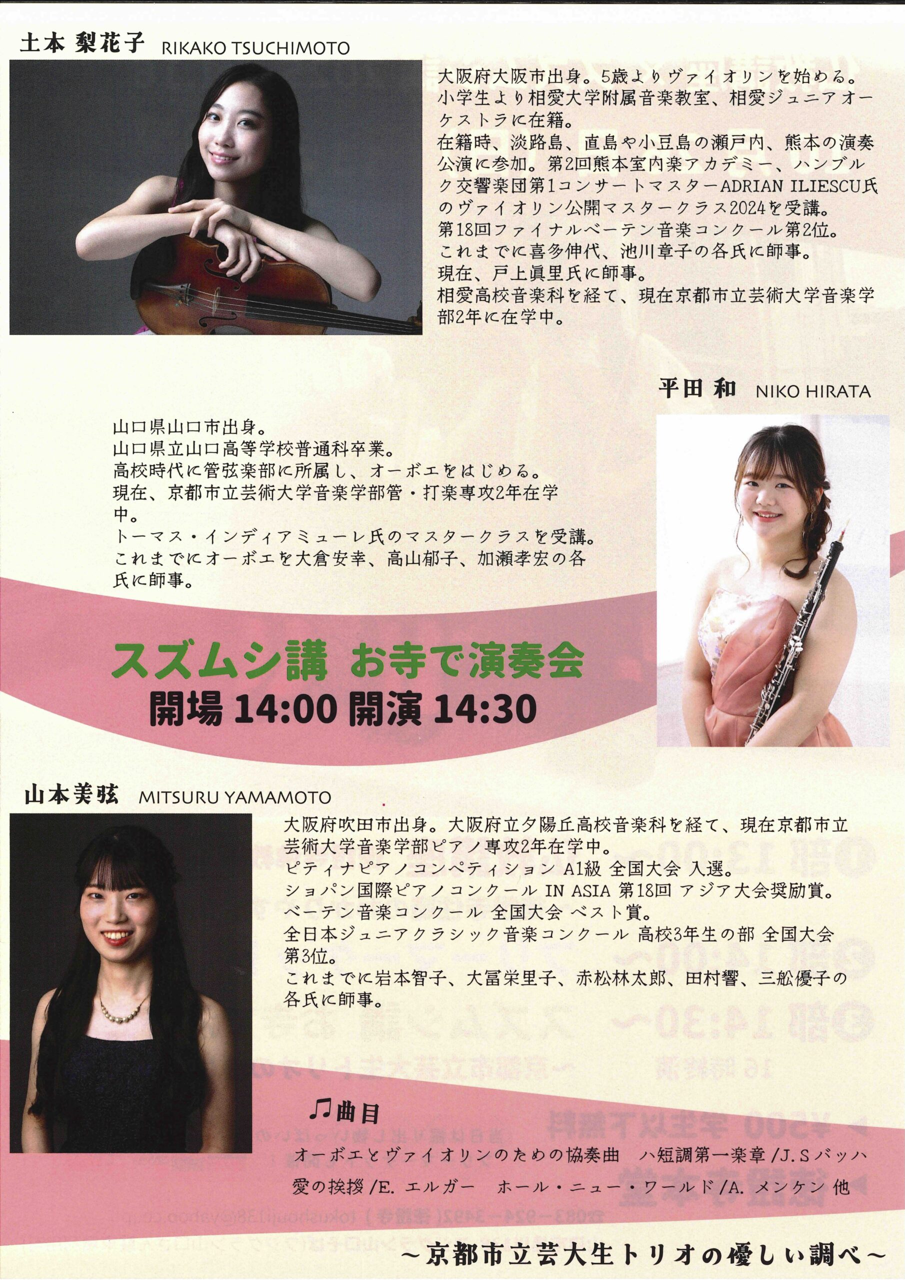お寺で演奏会〜芸大生トリオの優しい調べ〜徳證寺スズムシ講 VOL.16!