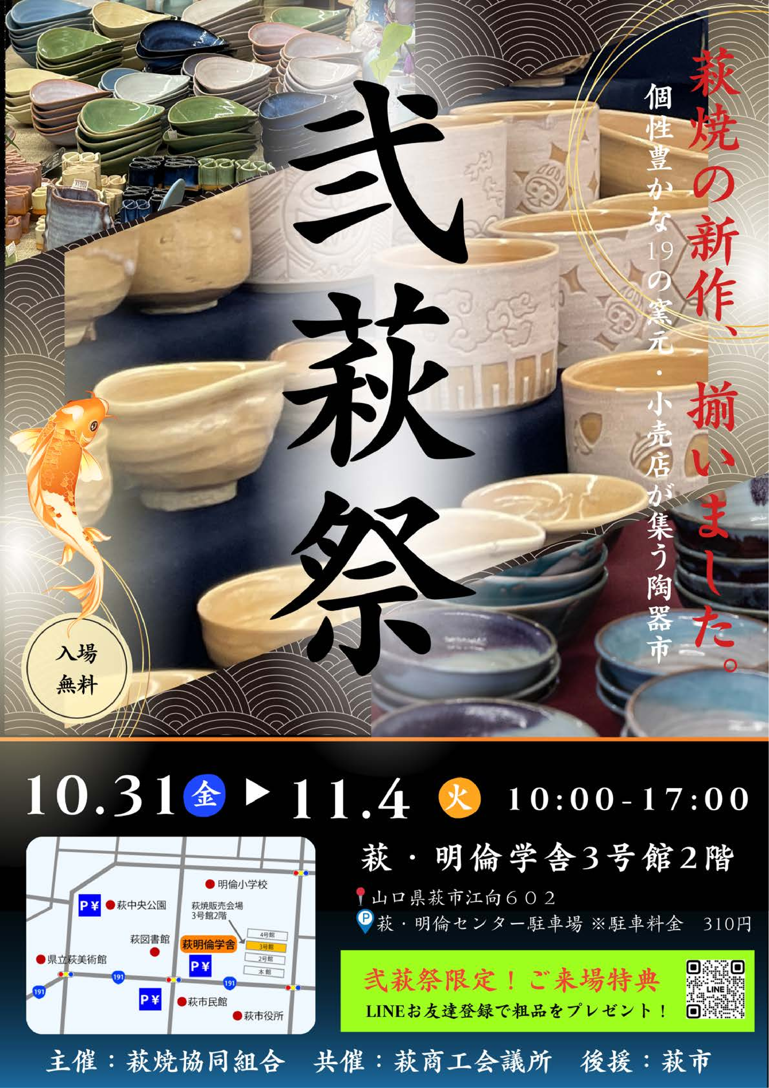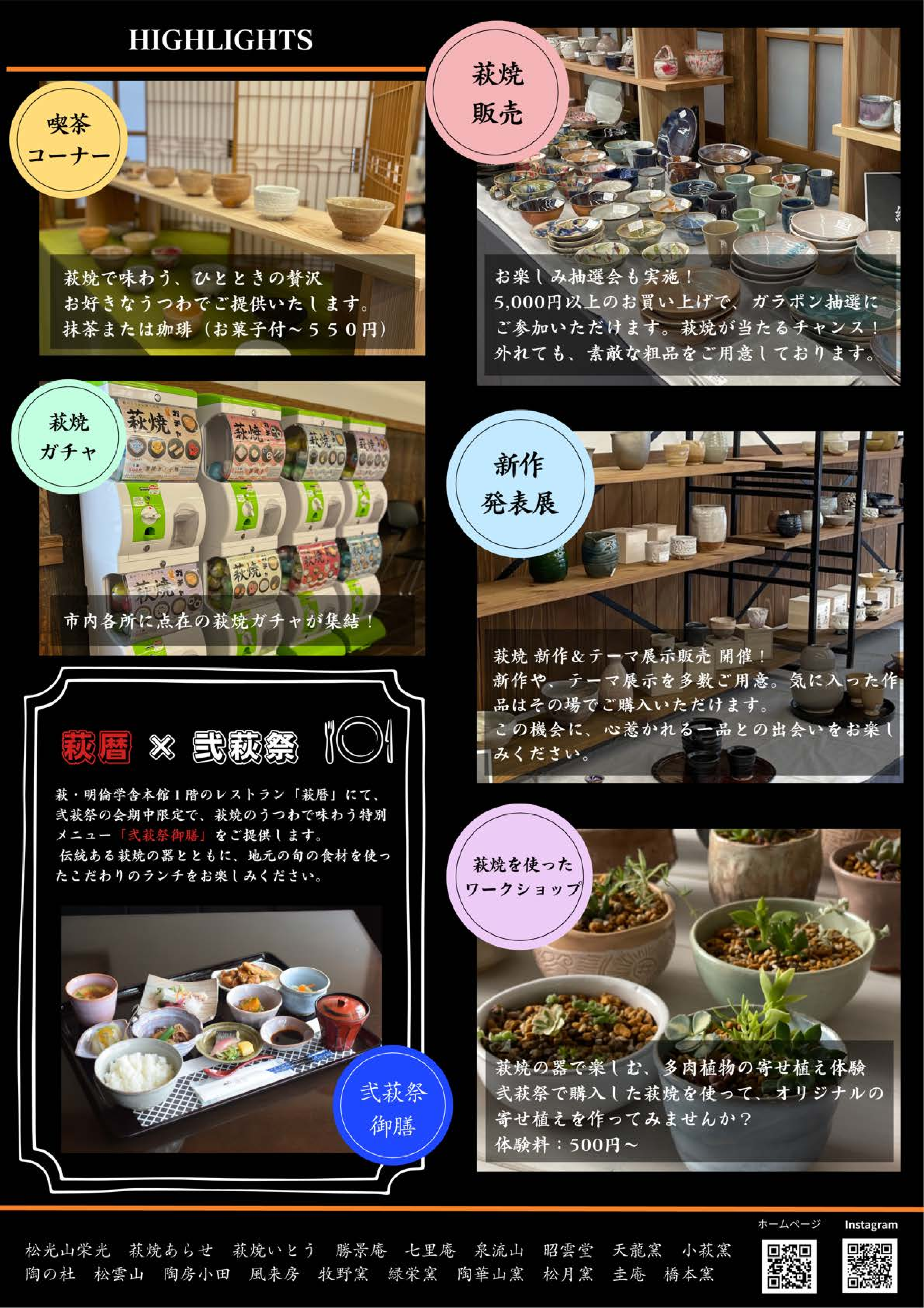 古くからお茶の世界には「一楽二萩三唐津」という言葉があり、萩焼が高く評価されていることの代名詞となっていますが、イベントのタイトルには「二萩」という文字を用いて「弐萩祭」と名付けました。